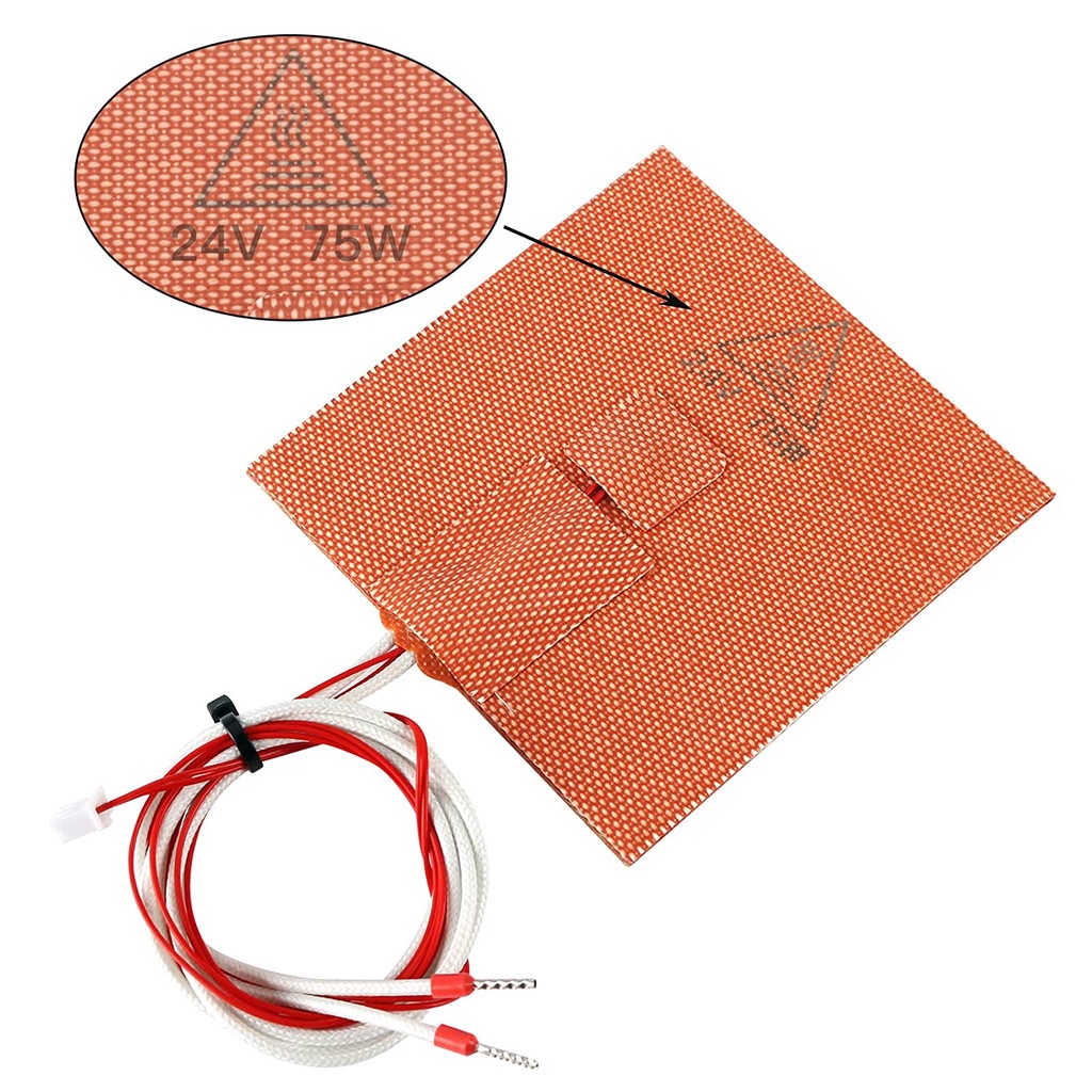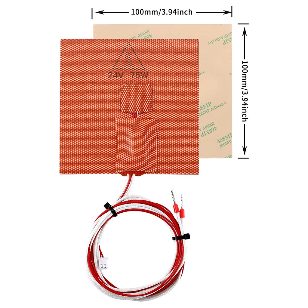 Voron V0.1 High Temperature 3D Printer Silicone Heated Bed 100x100mm 24V 75W, Built-in Thermistor Thermal Fuse Heating Pad XH2.54-2P Connector with Brand Adhesive for Voron 0.1