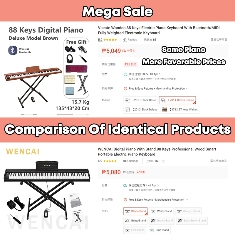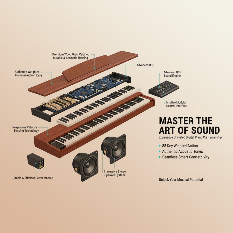 Vseate Wooden 88 Keys Electric Piano Keyboard With Bluetooth/MIDI Fully Weighted Electronic Keyboard