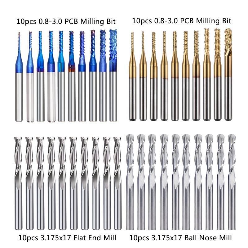 Vsharp 40pcs Nano Blue Coat End Mill Engraving Bits Set 3.175mm Shank CNC Router Bits Ball Nose PCB Milling Cutter Carbide Tools