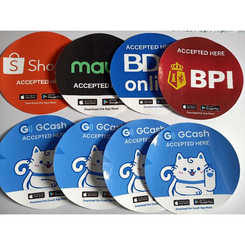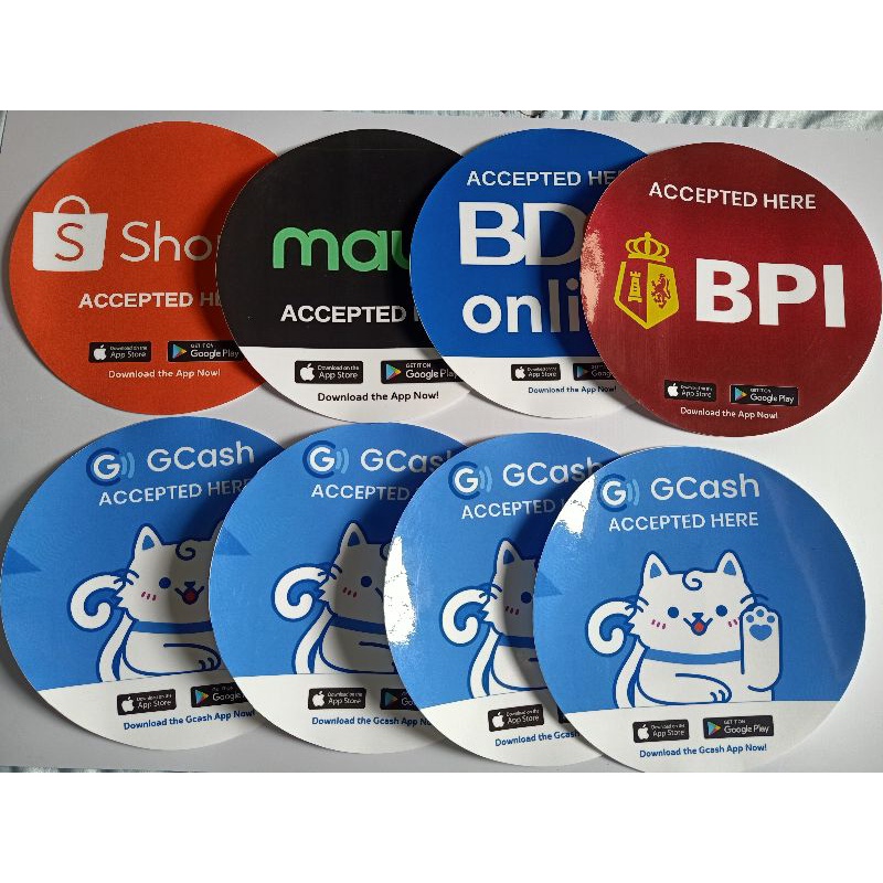 Vynil Sticker water proof GCash Accepted Here Round sticker 8 diameter bdo, maya, shopee,bpi