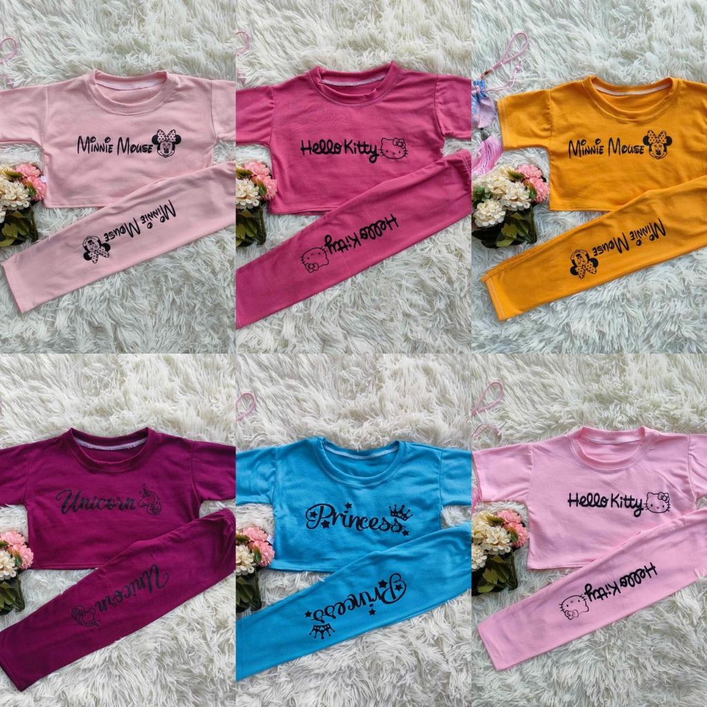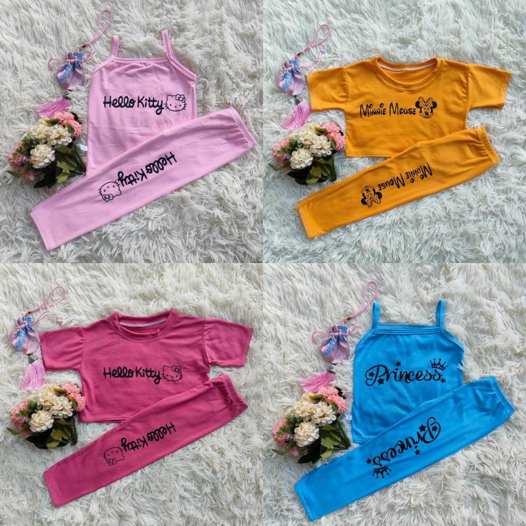 Croptop Tshirt / Spaghetti Terno Highwaist Leggings Very Comfy Cute Design For Toddlers (S , M , L)