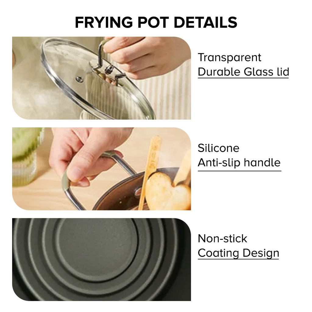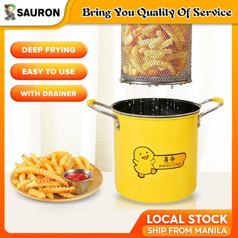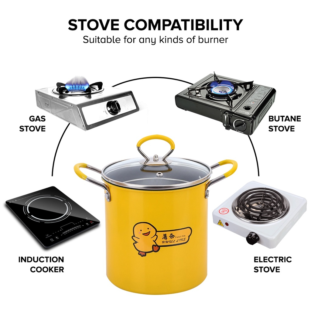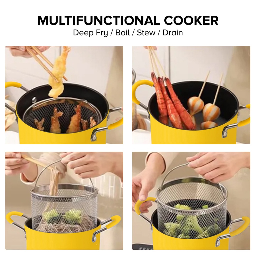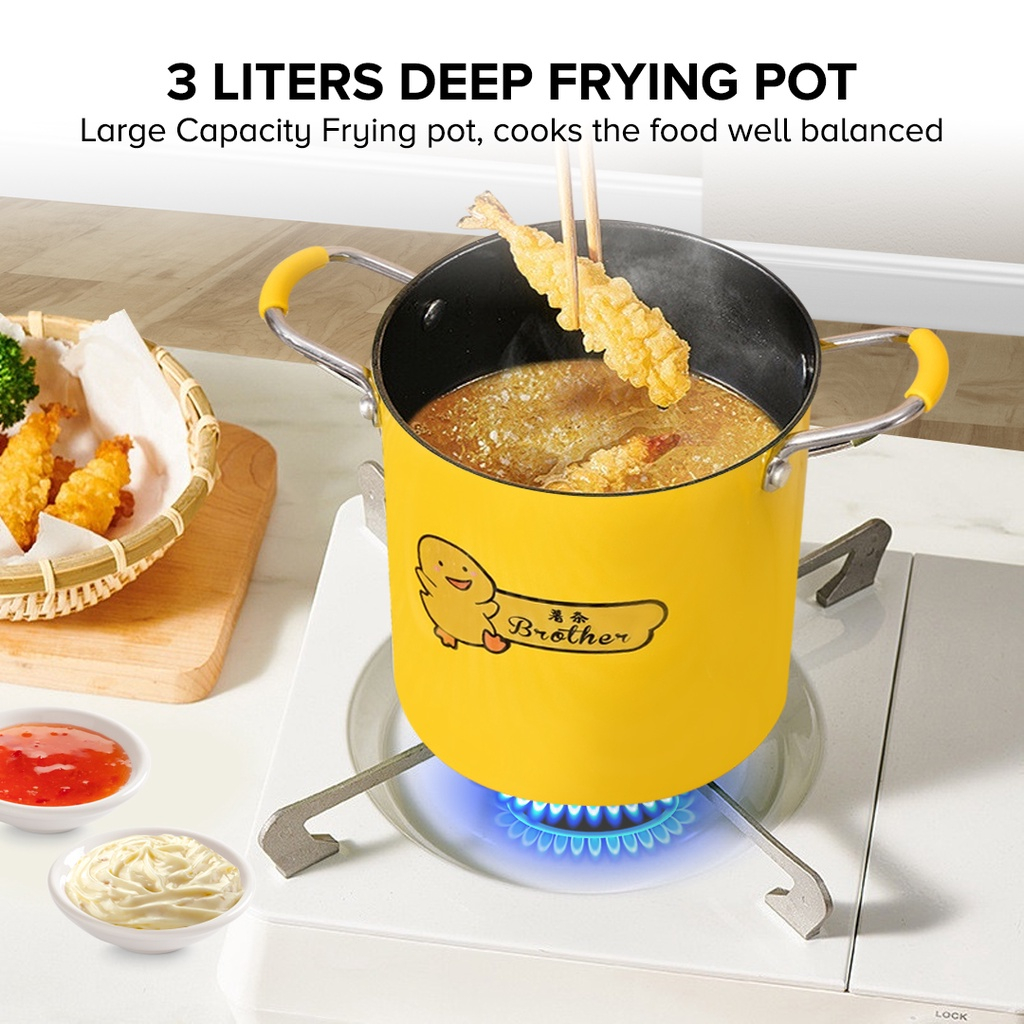 3L Mini Deep Frying Pan with Strainer Multifunctional Casserole Noodle Pot For Gas Induction