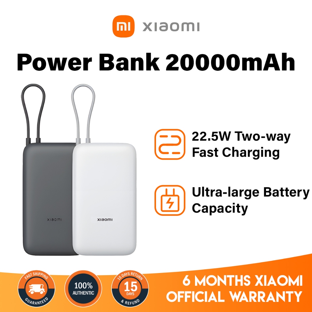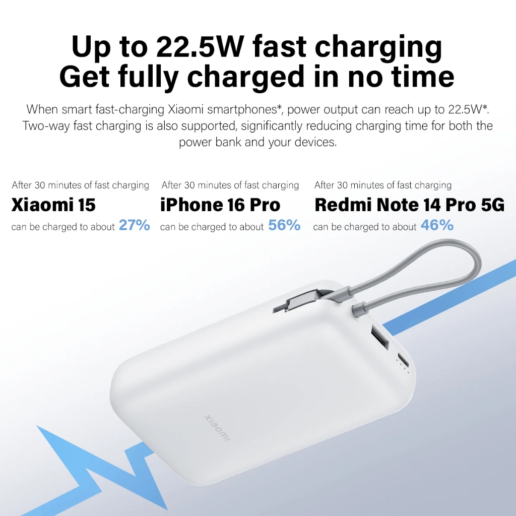 【New Arrival】Xiaomi Power Bank 20000mAh Integrated Cable 22.5W Tow-Way Fast Charging