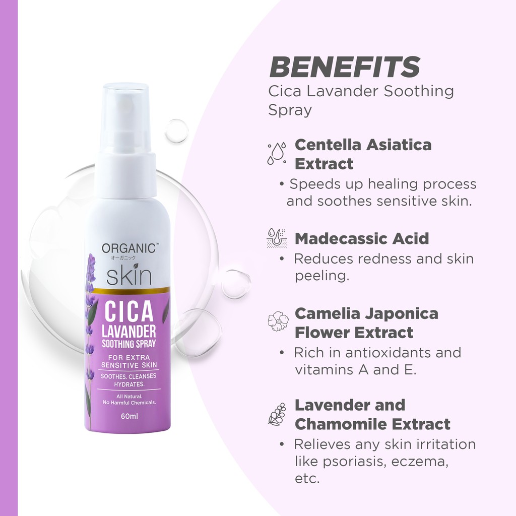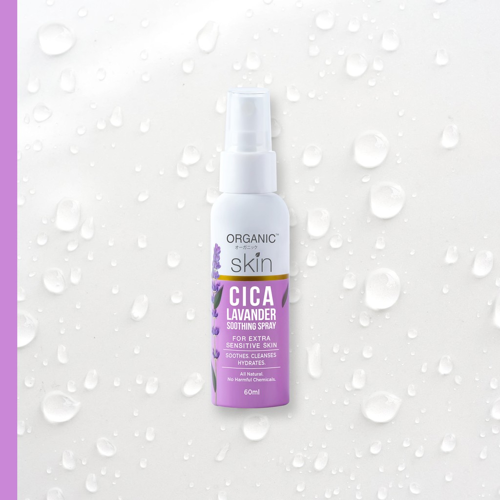 Organic Skin Japan Cica Lavander Soothing Spray (60ml) Face Mist Spray Bottle with Lavender Scent