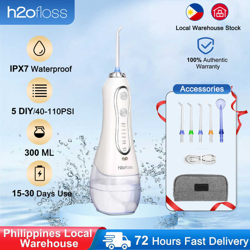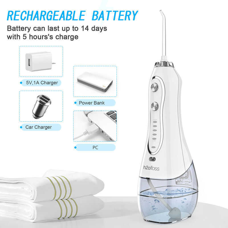 Portable H2ofloss Oral Irrigator Cordless Wate Waterproof Teeth Cleaner with Modes 5 Jets Tips and