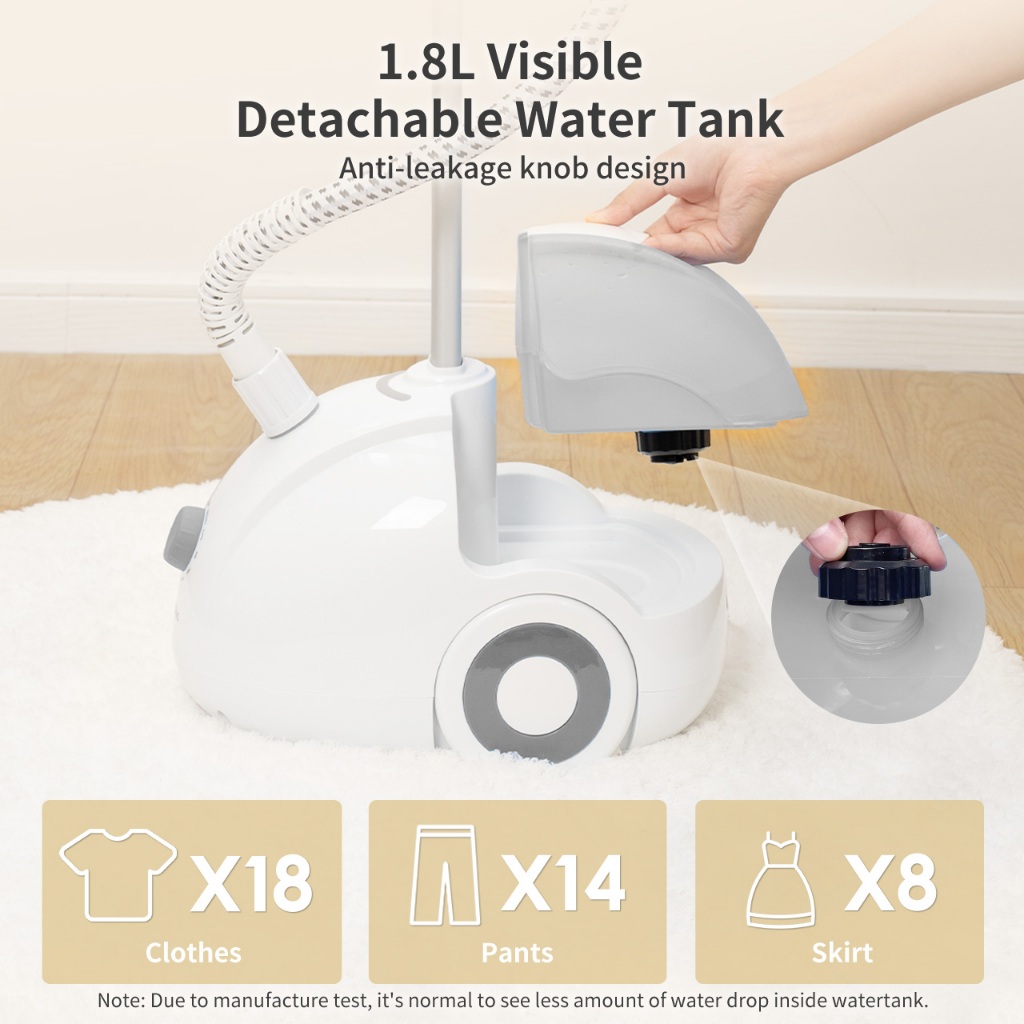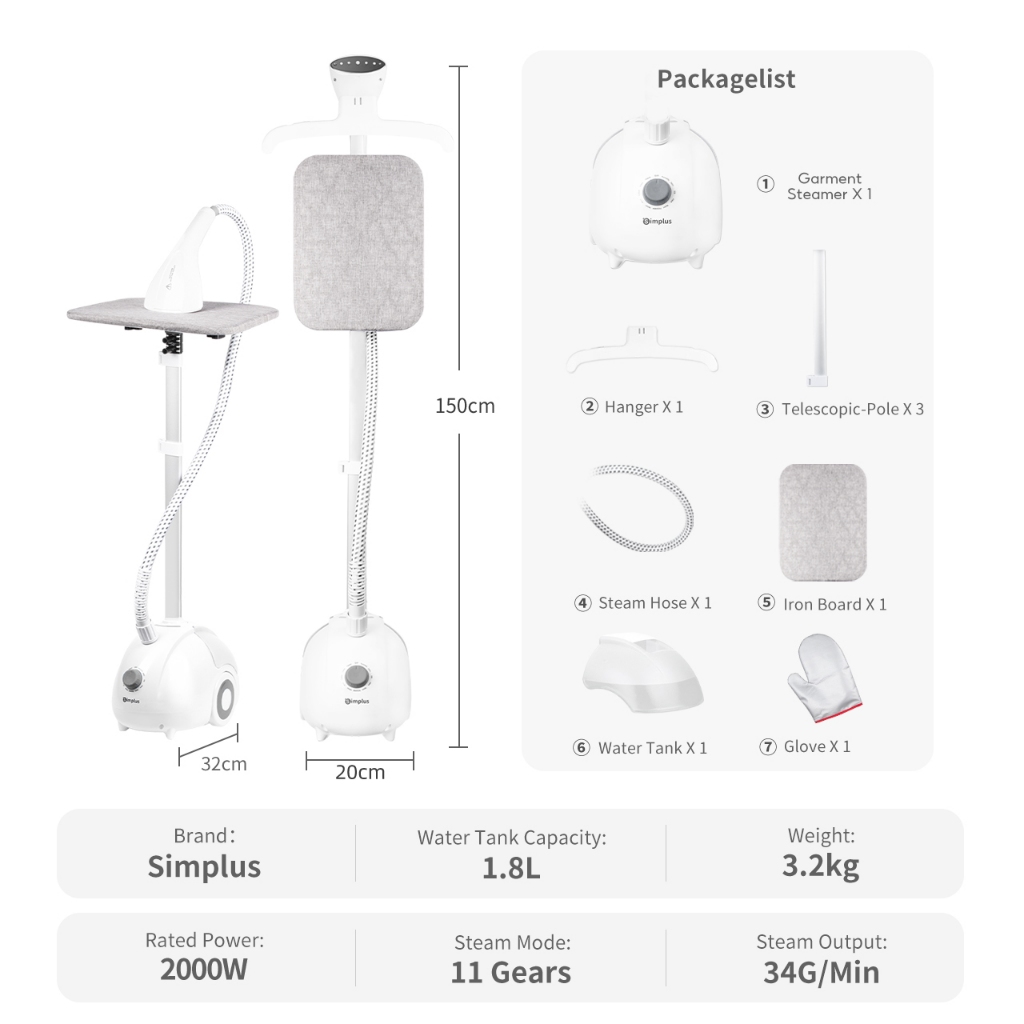 Simplus Garment Steamer Quick Ironing with Adjustable Height Stable Design 1.8L Capacity