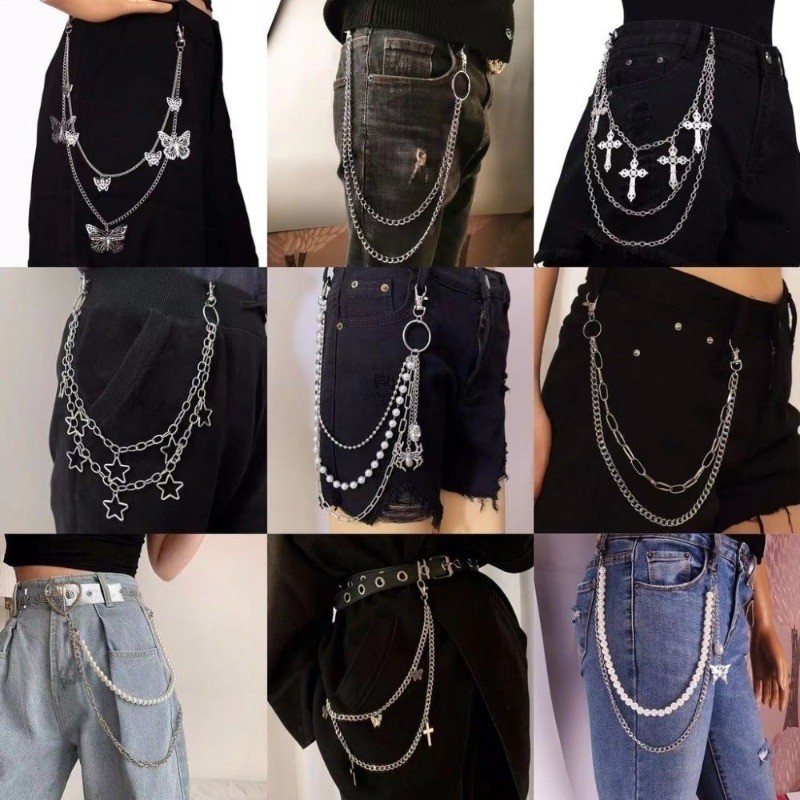 Unisex Stainless Steel Punk Pants Chain Accessories For Women Men Street Hip Hop Cross Pendant Chain