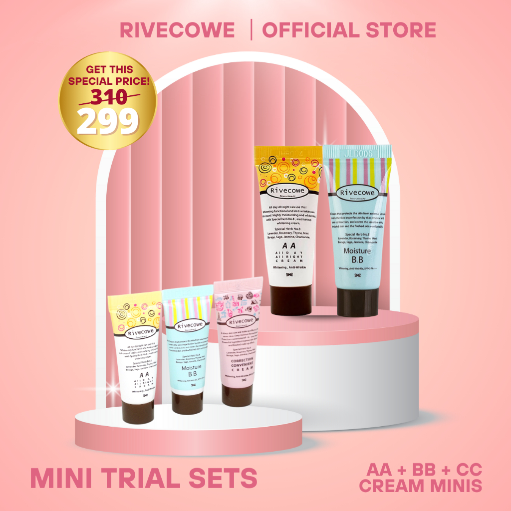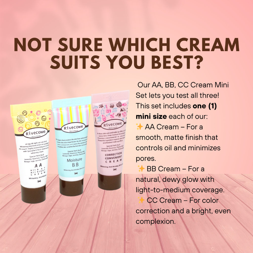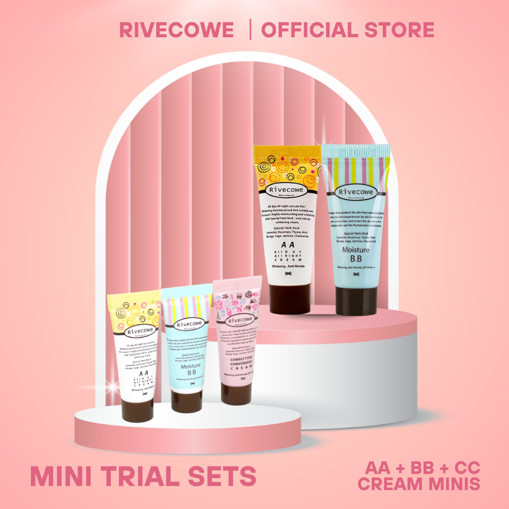 Rivecowe AA+BB+CC Cream Mini Set 2in1 Skincare Makeup Whitening Anti Wrinkle SPF43 PA+++