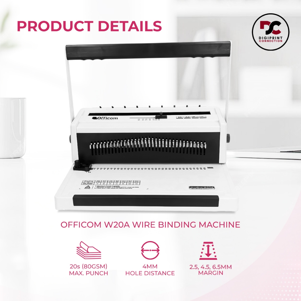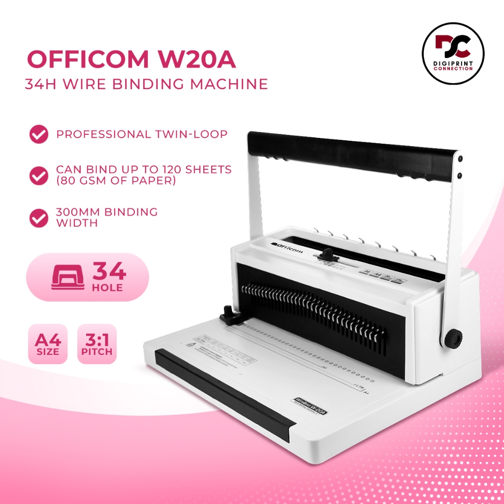 W20A Wire Binding Machine Officom A4 Binder Heavy Duty 3:1 Binder Notebook 34 Holes 20 Sheets