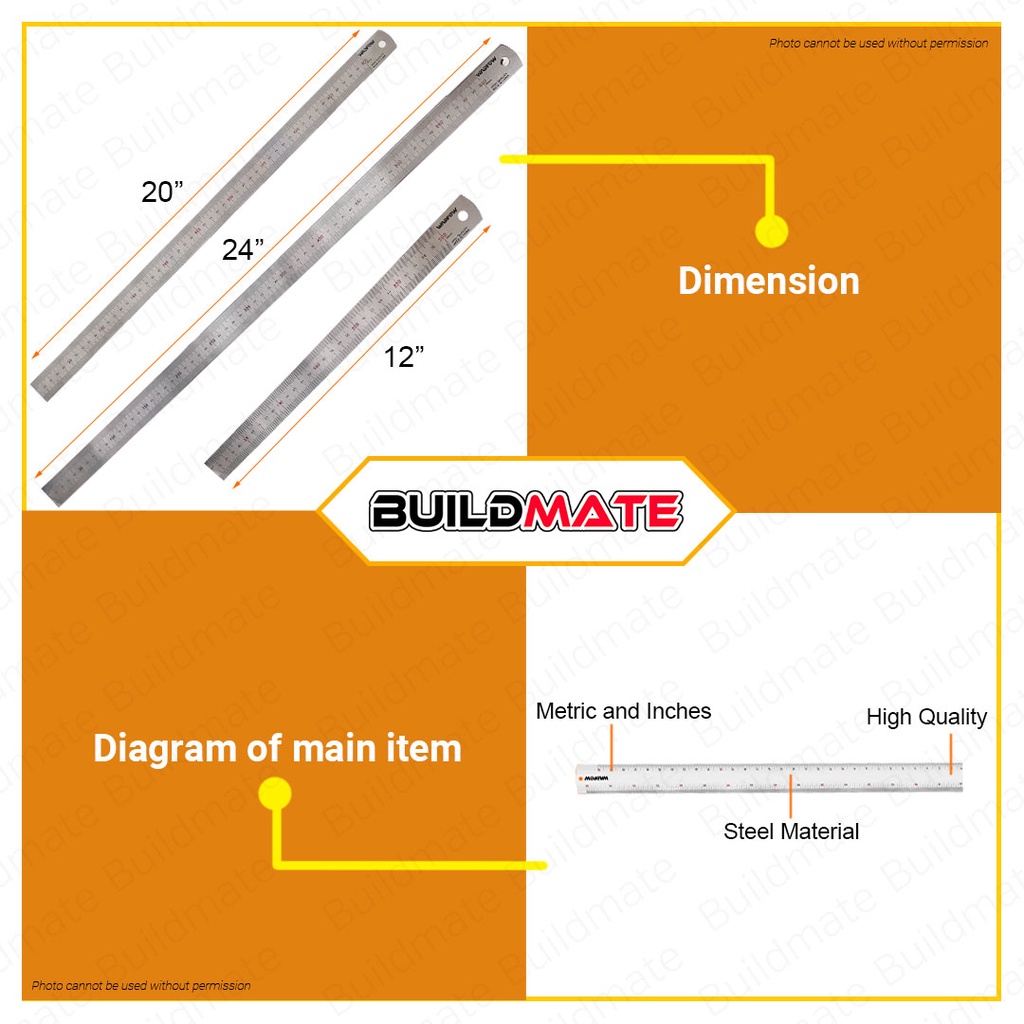 WADFOW 12" | 20" | 24" Inch Ruler Metric & Inch Stainless Steel Straight Edge Measuring Tool | WHT