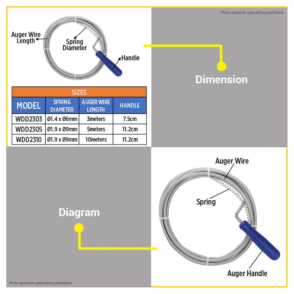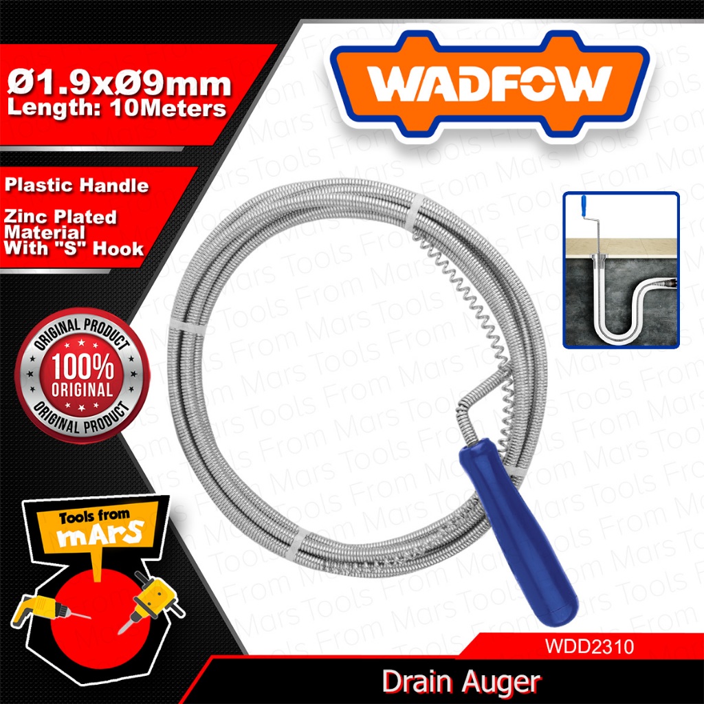 WADFOW Flexible Spring Drain Auger 10M Wire Sewer Manual Plumbing Sink Rod Cable Pipe Auger -TFM-WHT