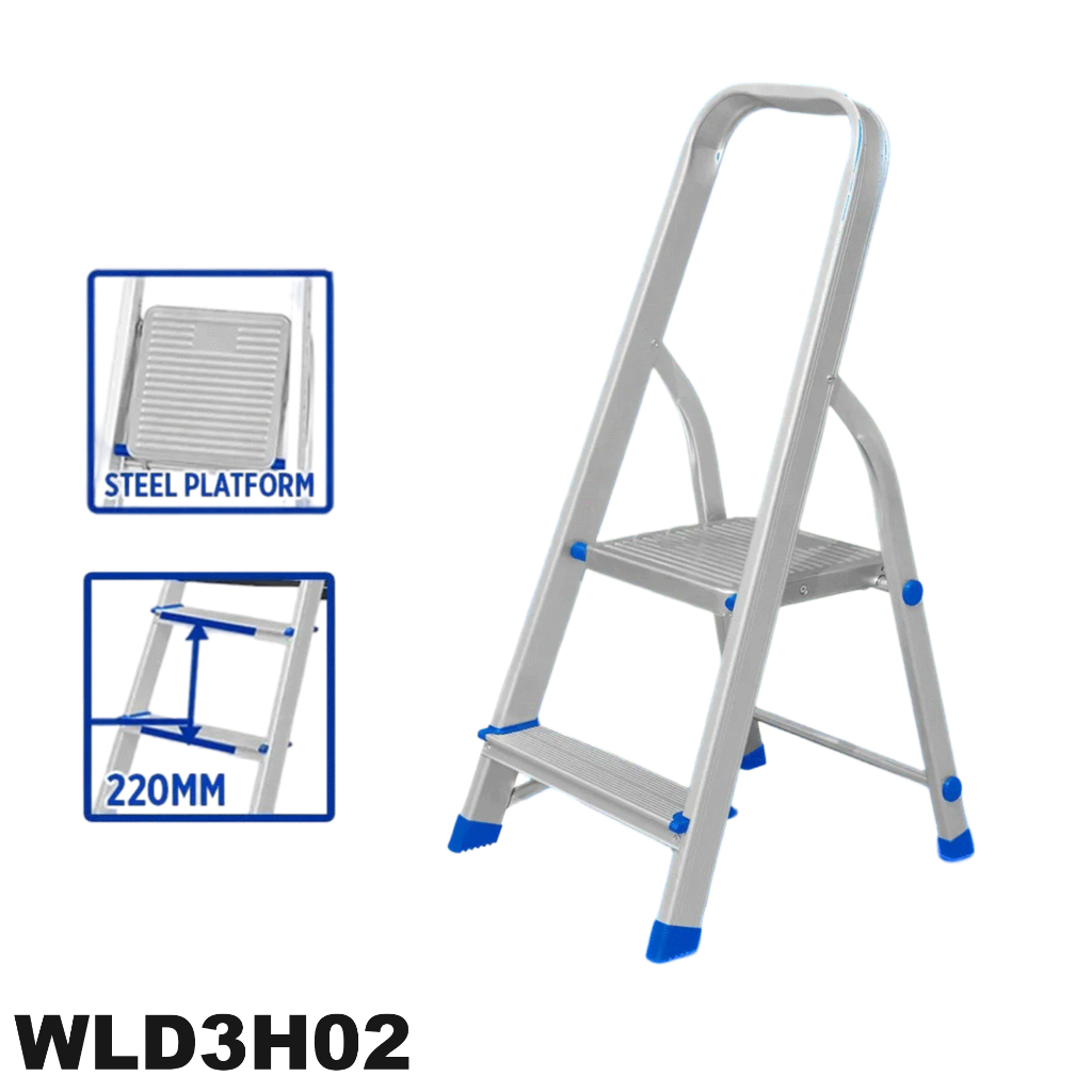 WADFOW Household Ladder 2 Steps 120kg Foldable Aluminum & Steel Non Slip Steps Folding TFM WHT