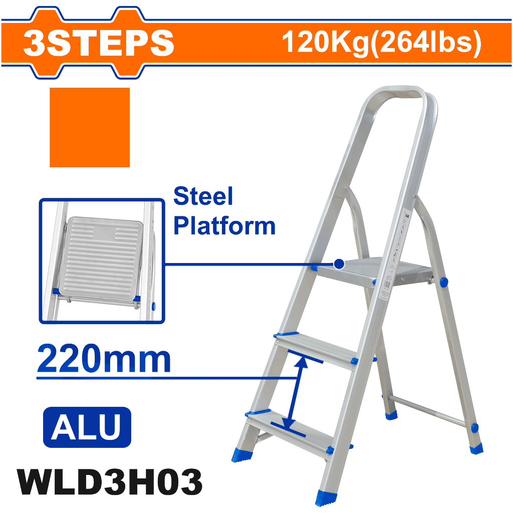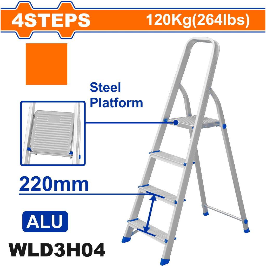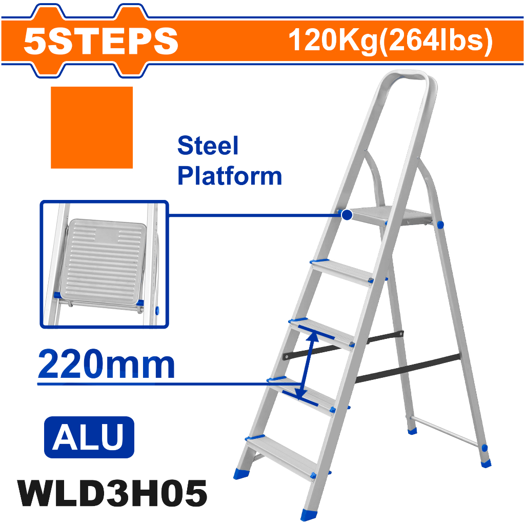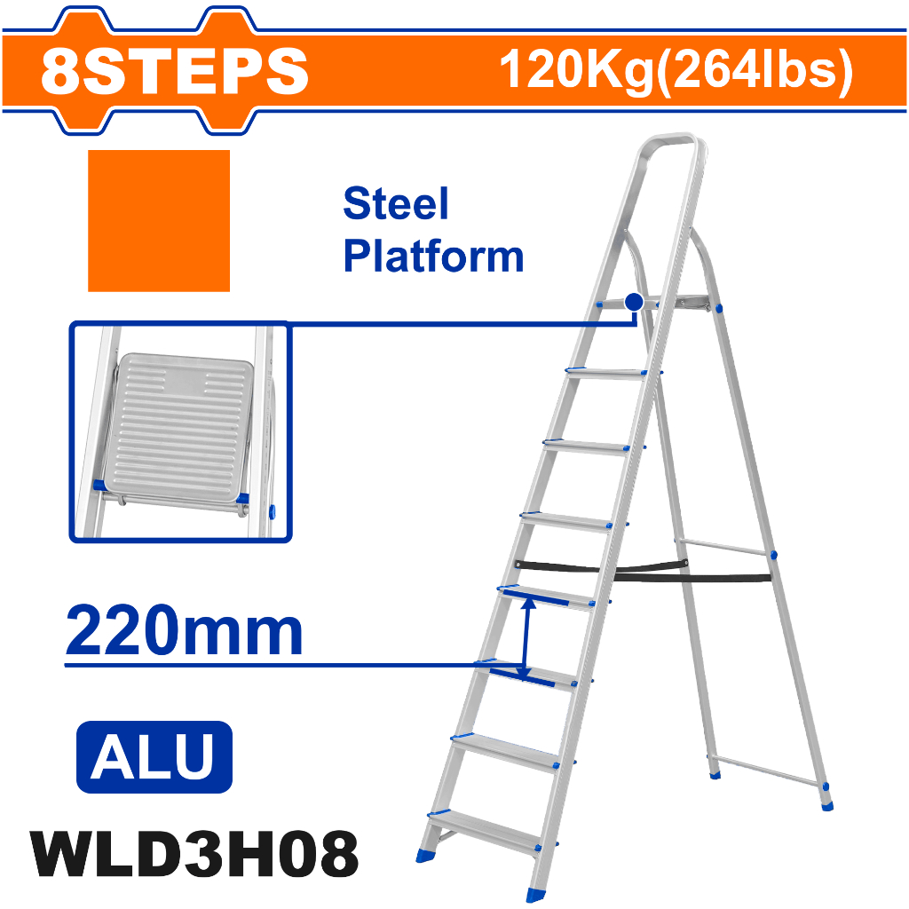 WADFOW Household Ladder 3 - 8 Steps 120kg Foldable Aluminum & Steel Non Slip Steps Folding TFM WHT