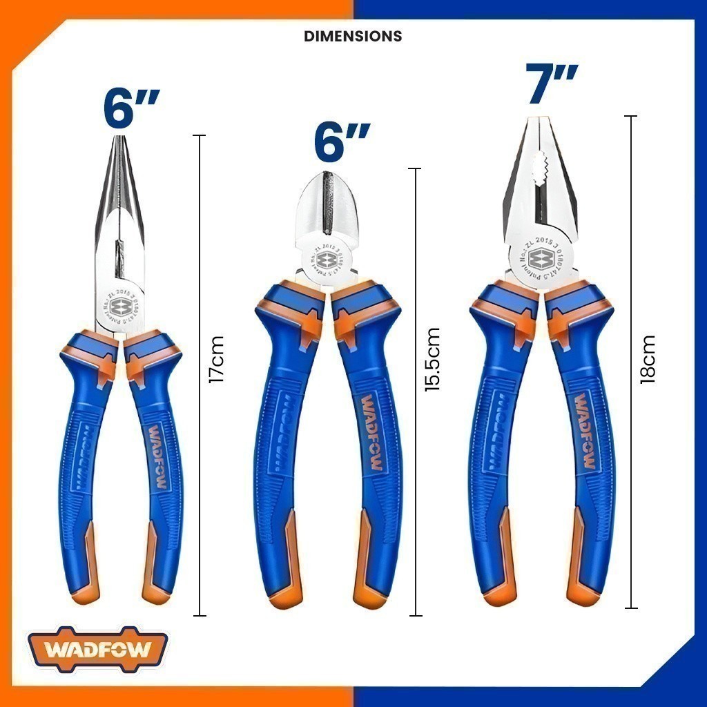 WADFOW Long Nose Combination Plier Set 3 Pcs Set WPS0603 (WHT)