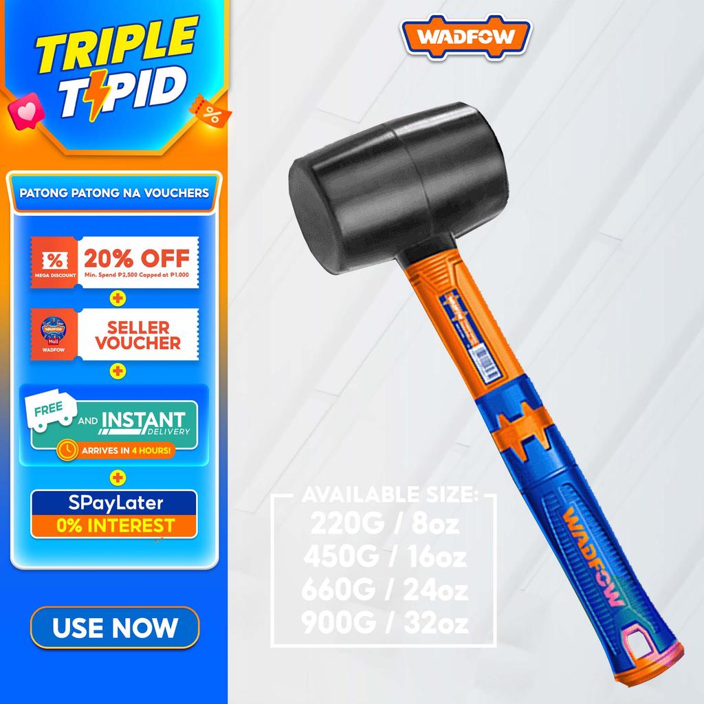 Wadfow Rubber Mallet Hammer With Fiberglass Handle Soft Maso Martilyo (WHT)