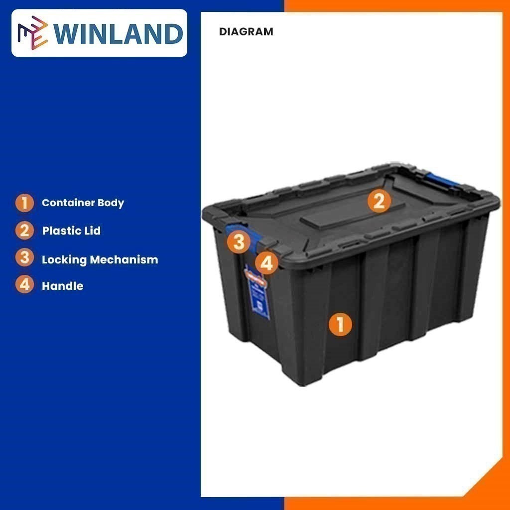 Wadfow by Winland 80Liters Stackable Plastic Container - Black WTB3380 WAD-HT