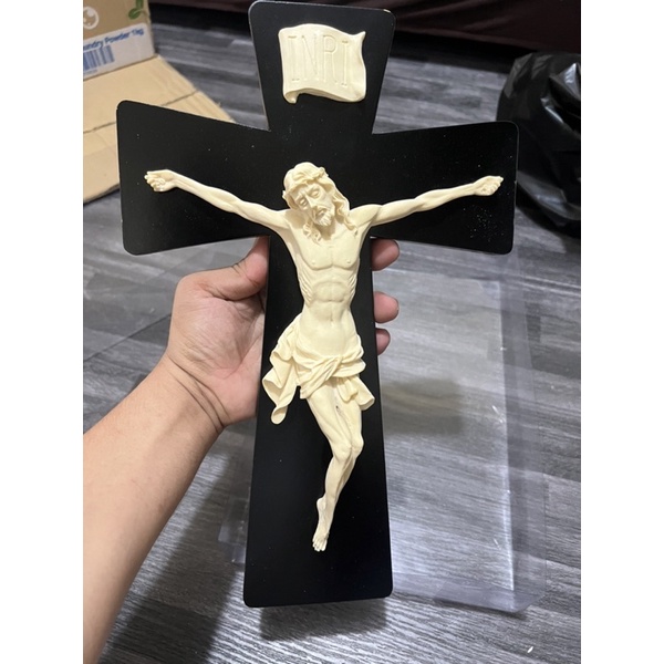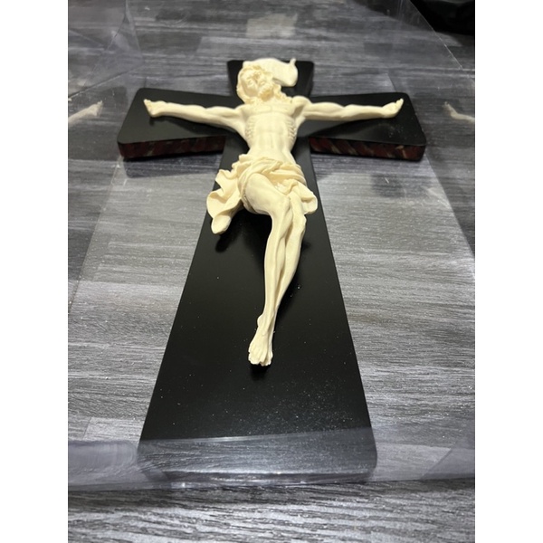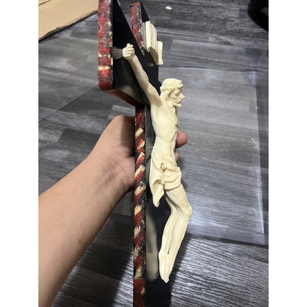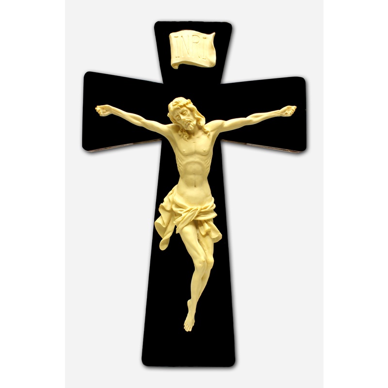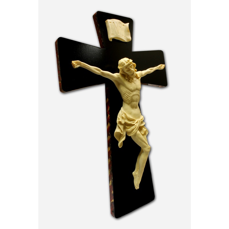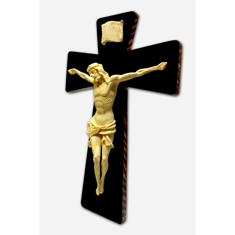 WALL MOUNTED CRUCIFIX - 35 CM /RESIN AND WOOD