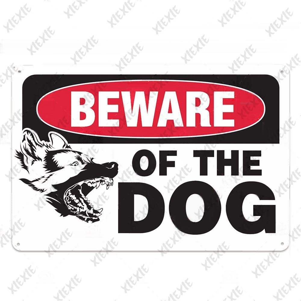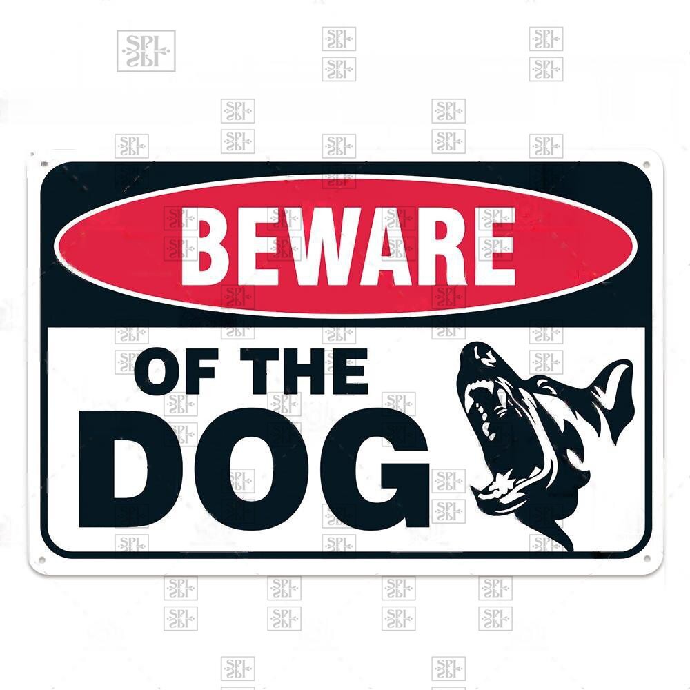 WARNING BEWARE THE DOG Retro Metal Warning Sign Outdoor Farm Trunk Hanging Sign Metal Plate Garage Wall Hanging Paste Metal Sign