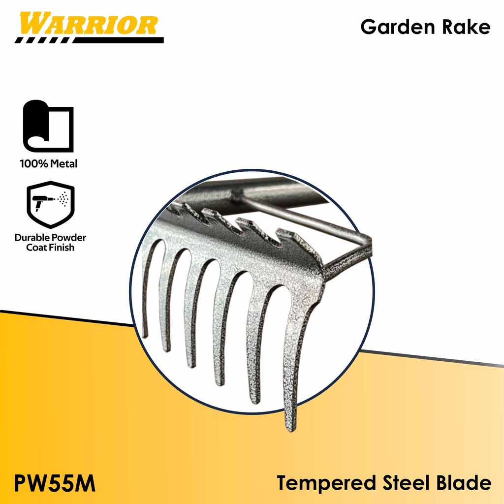 WARRIOR Garden RAKE 16 Tines for Gardening ALL-METAL 50-Inch Heavy Duty (Kalaykay)