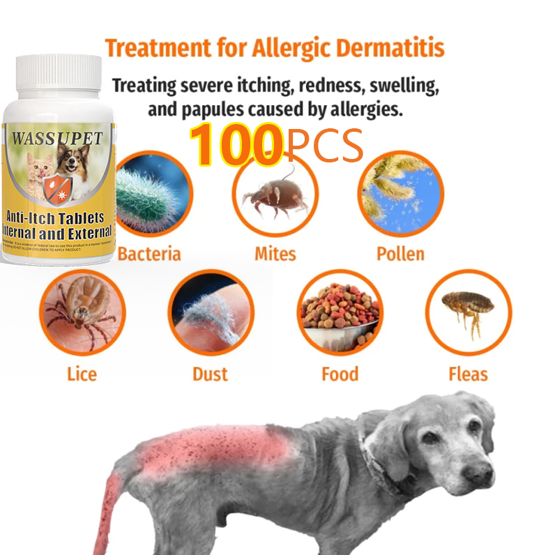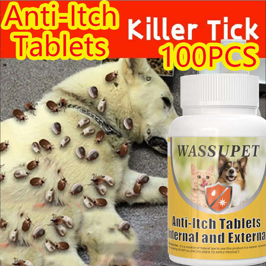 WASSUPET 100pcs Anti Flea and Tick Tablets for Dog Tick and Flea Remover Tablets Anti Itching Tablet