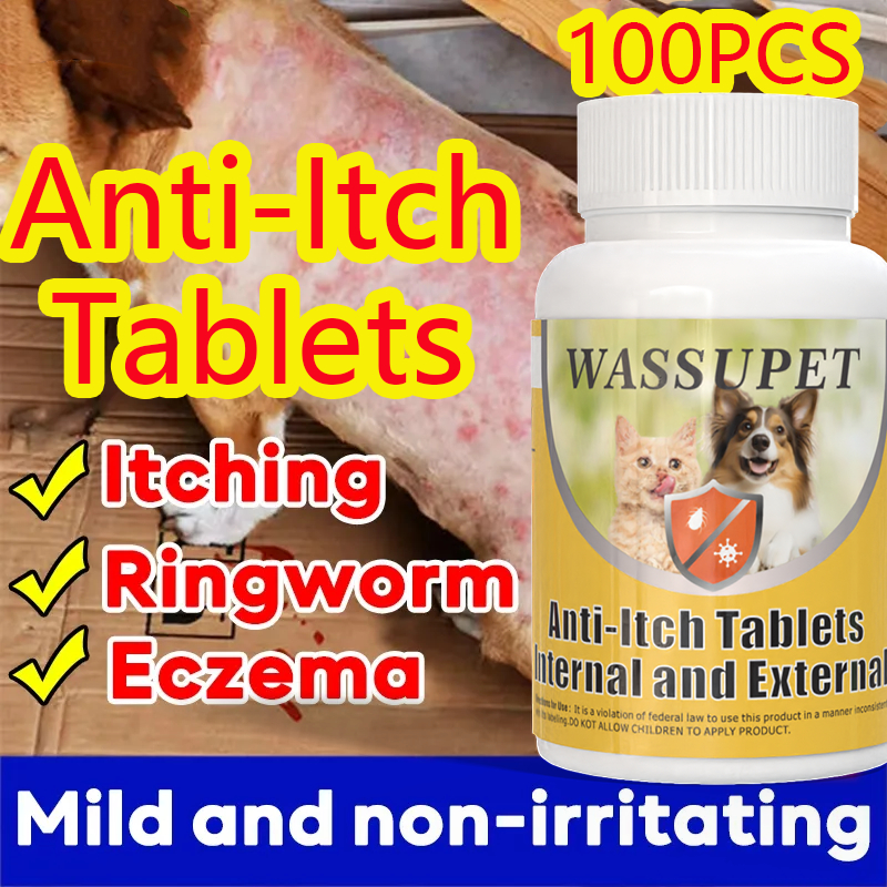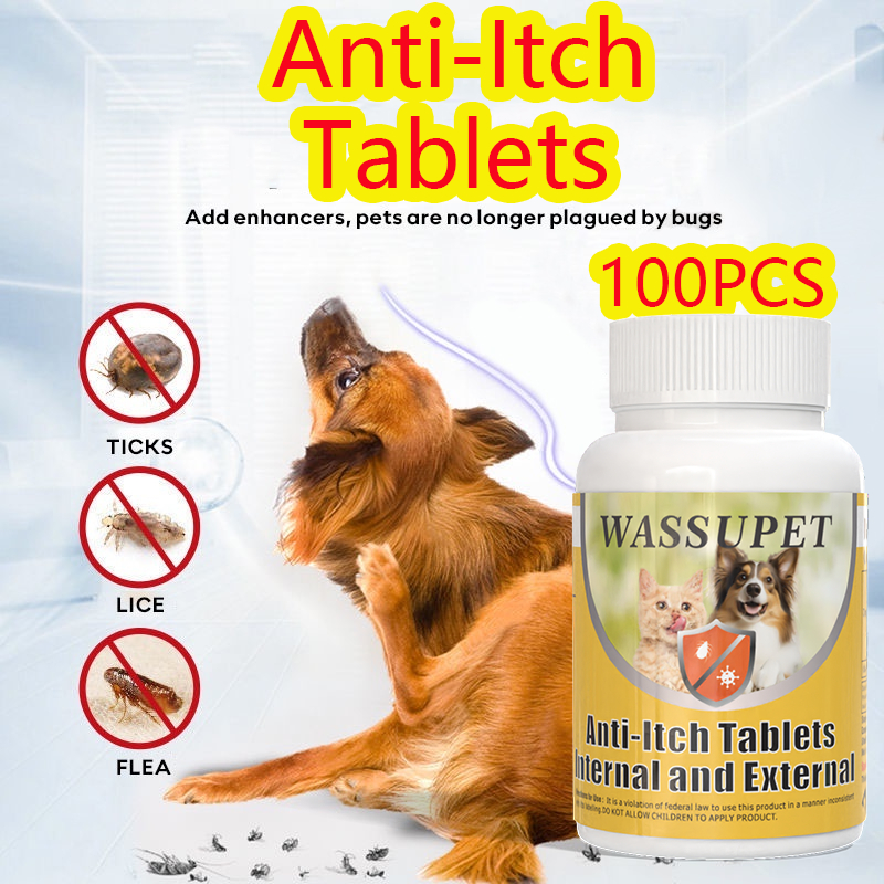 WASSUPET 100pcs Pet Anti ltch Tablets Tick And Flea Medicine For Anti Itching Allergy Treatment