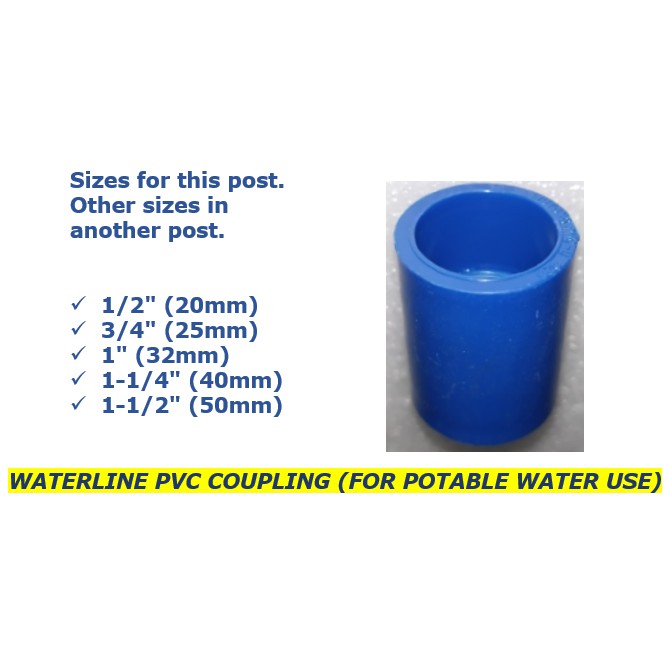 WATERLINE PVC COUPLING (FOR POTABLE WATER USE) - 1/2", 3/4", 1", 1-1/4", 1-1/2"