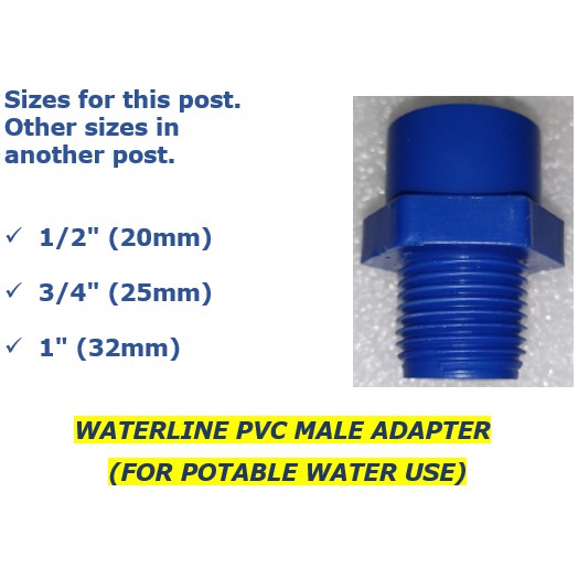 WATERLINE PVC MALE THREADED ADAPTER (FOR POTABLE WATER USE) - 1/2" (20mm), 3/4" (25mm), 1" (32mm)