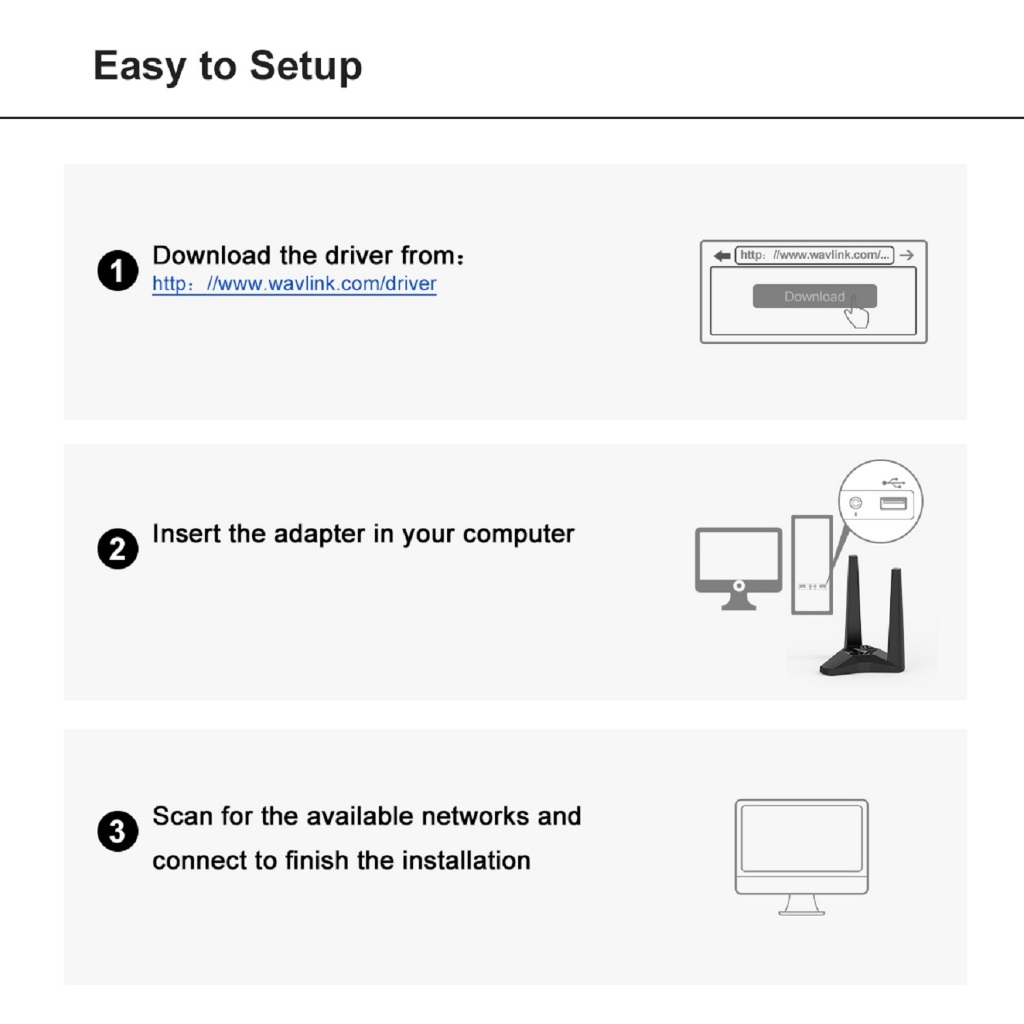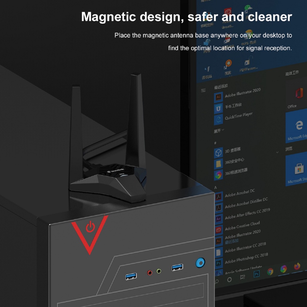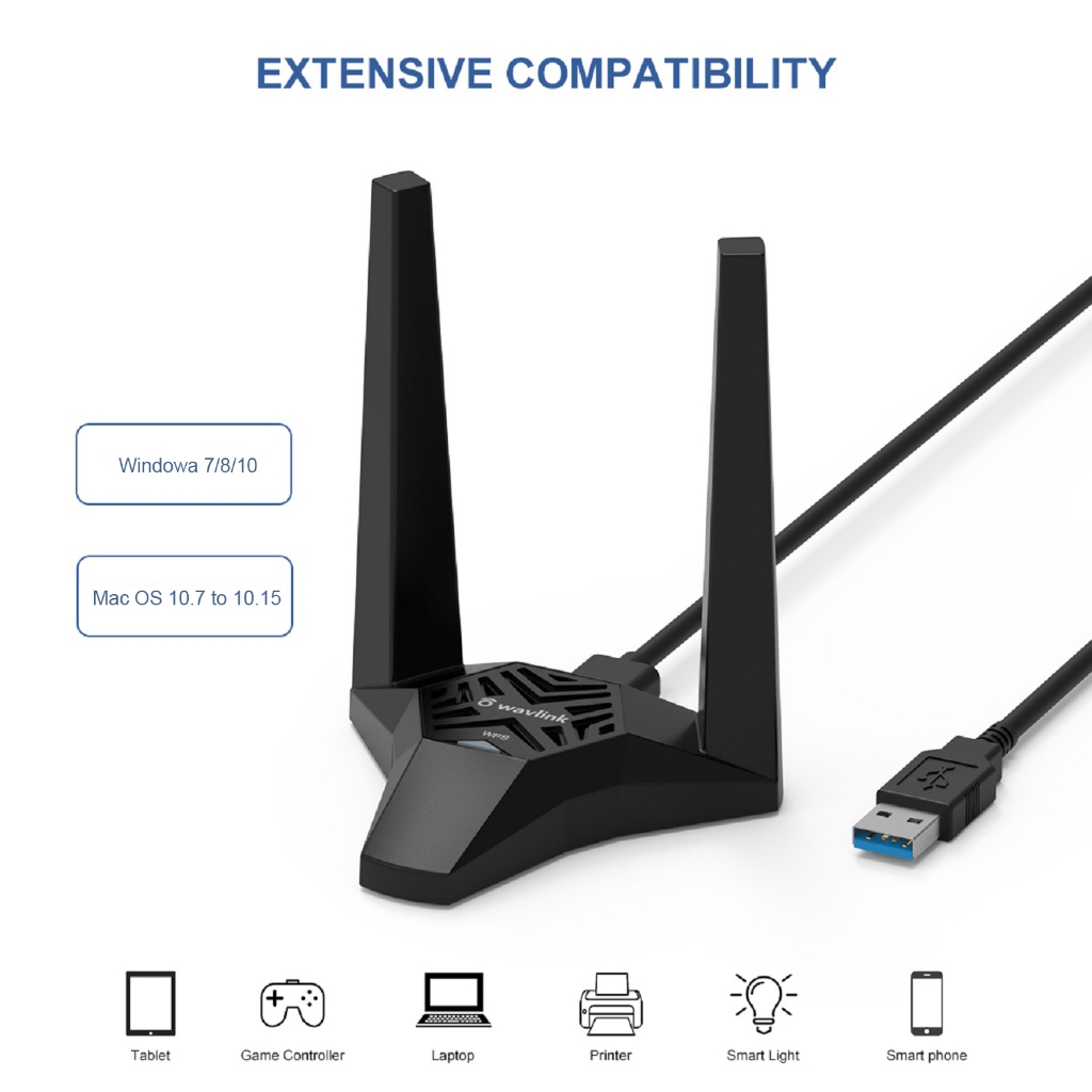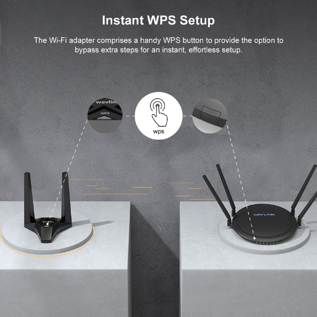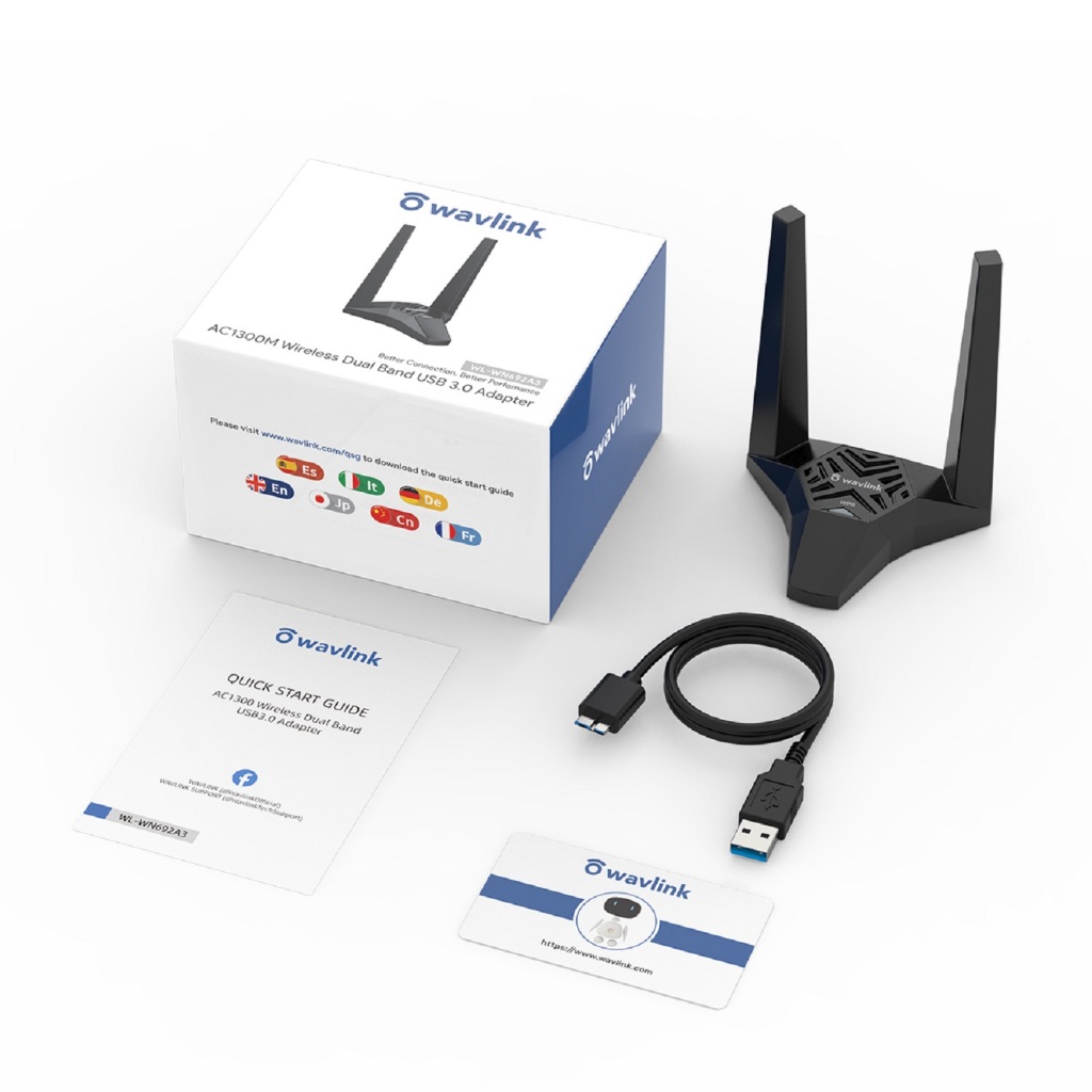 WAVLINK AC1300 USB WiFi Adapter 2.4GHz/5GHz With High Gain 3dBi Antennas