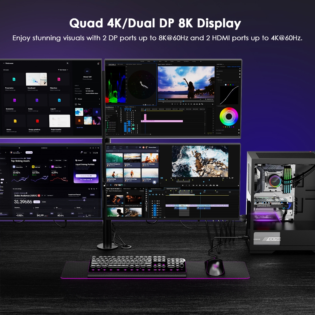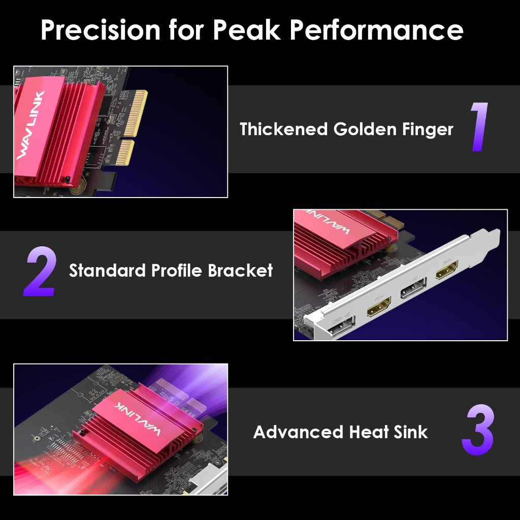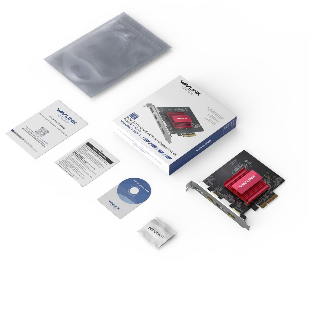 WAVLINK PCIe to Quad 4K Dual DP 8K Graphics Card with DisplayLink HDMI DP PC Video Card with Standard Profile Supports Multiple Monitors for Windows & Ubuntu
