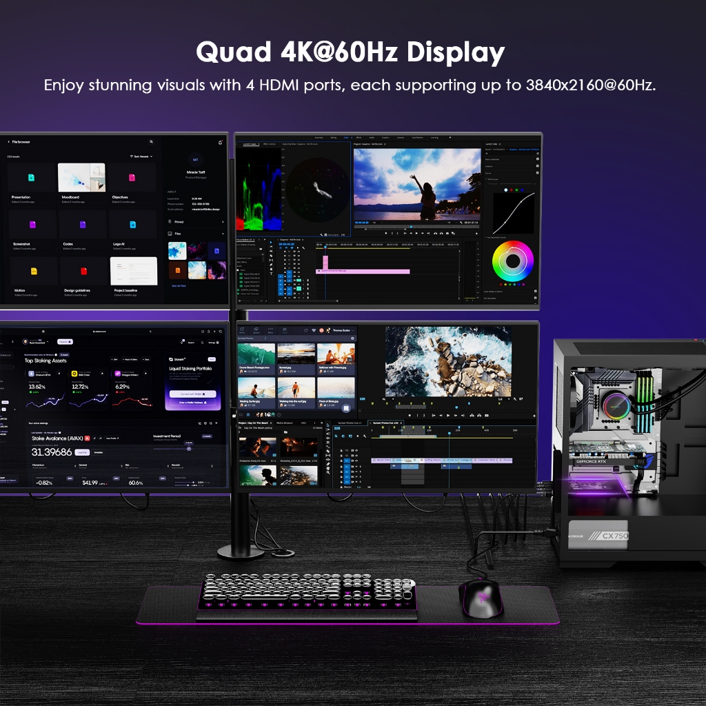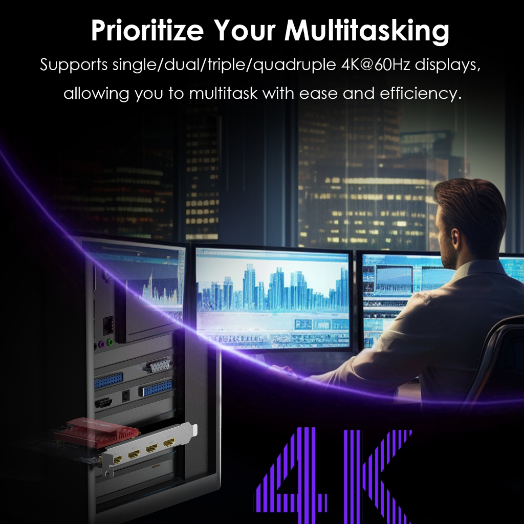 WAVLINK PCIe to Quad 4K HDMI Graphics Card with DisplayLink 4 HDMI Ports PC Video Card with Standard Profile Supports Multiple Monitors for Windows & Ubuntu