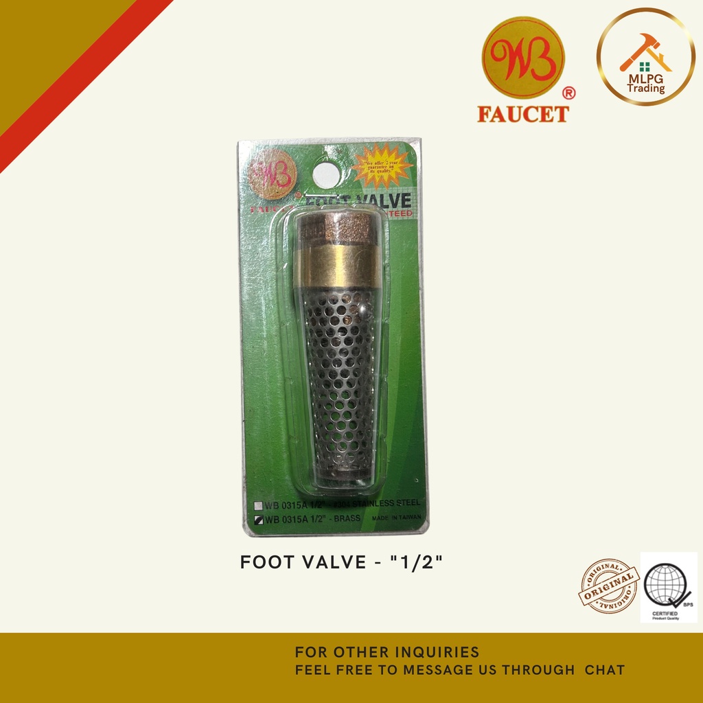 WB Brass Foot Valve HEAVY DUTY 1/2" 3/4" 1" 1-1/4" 1-1/2" "2"