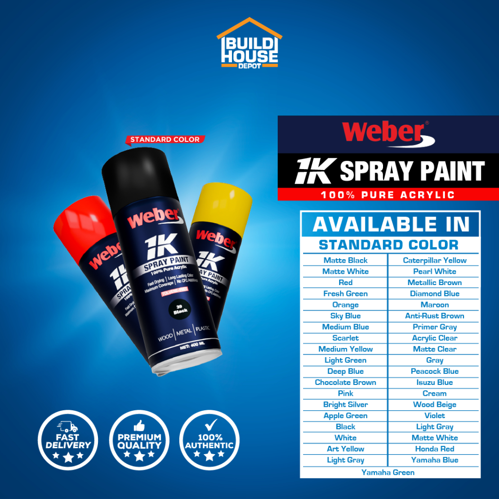 WEBER 1K Auto Acrylic Spray Paint - Complete Standard Colors - 400 ml