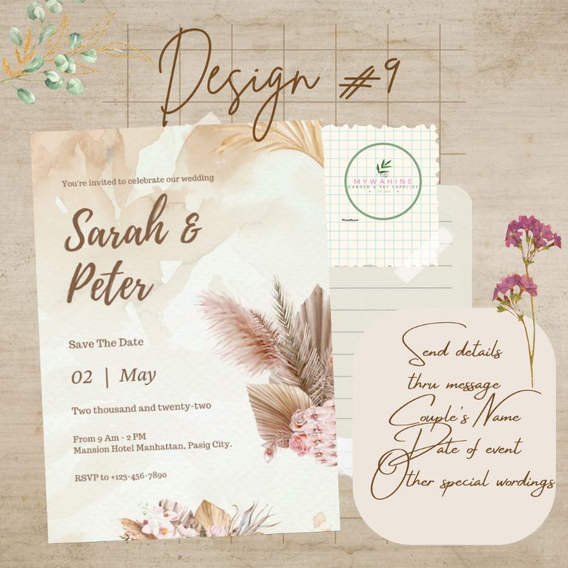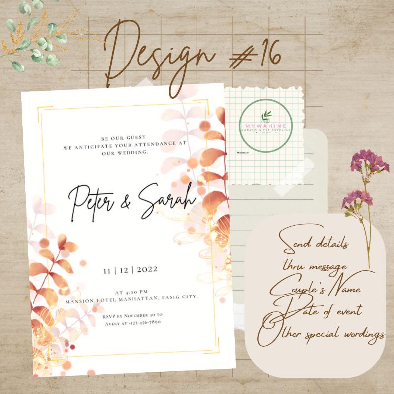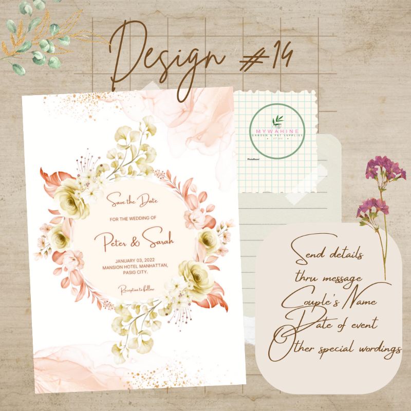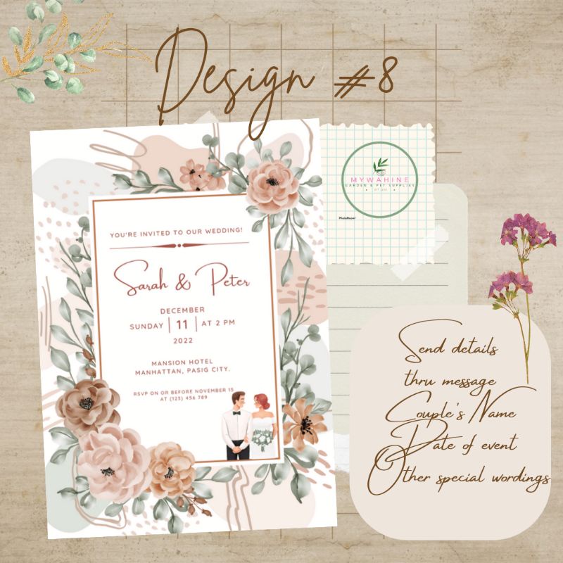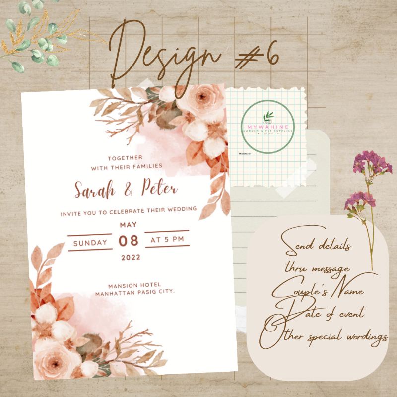 WEDDING INVITATION (MOTIF BLUSH/PEACH/OLDROSE/TAN) PREMIUM DESIGN CUSTOMISED PERSONALISED