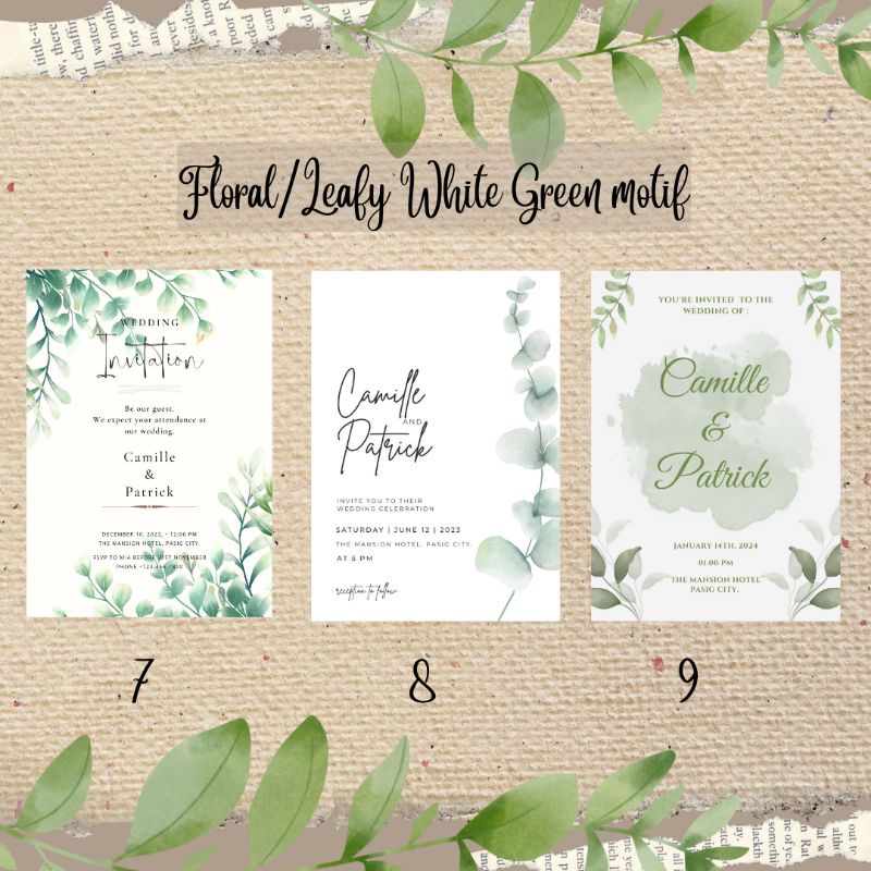WEDDING INVITATION CUSTOMISED (WHITE GREEN FLORAL LEAFY MOTIF) PREMIUM DESIGNS