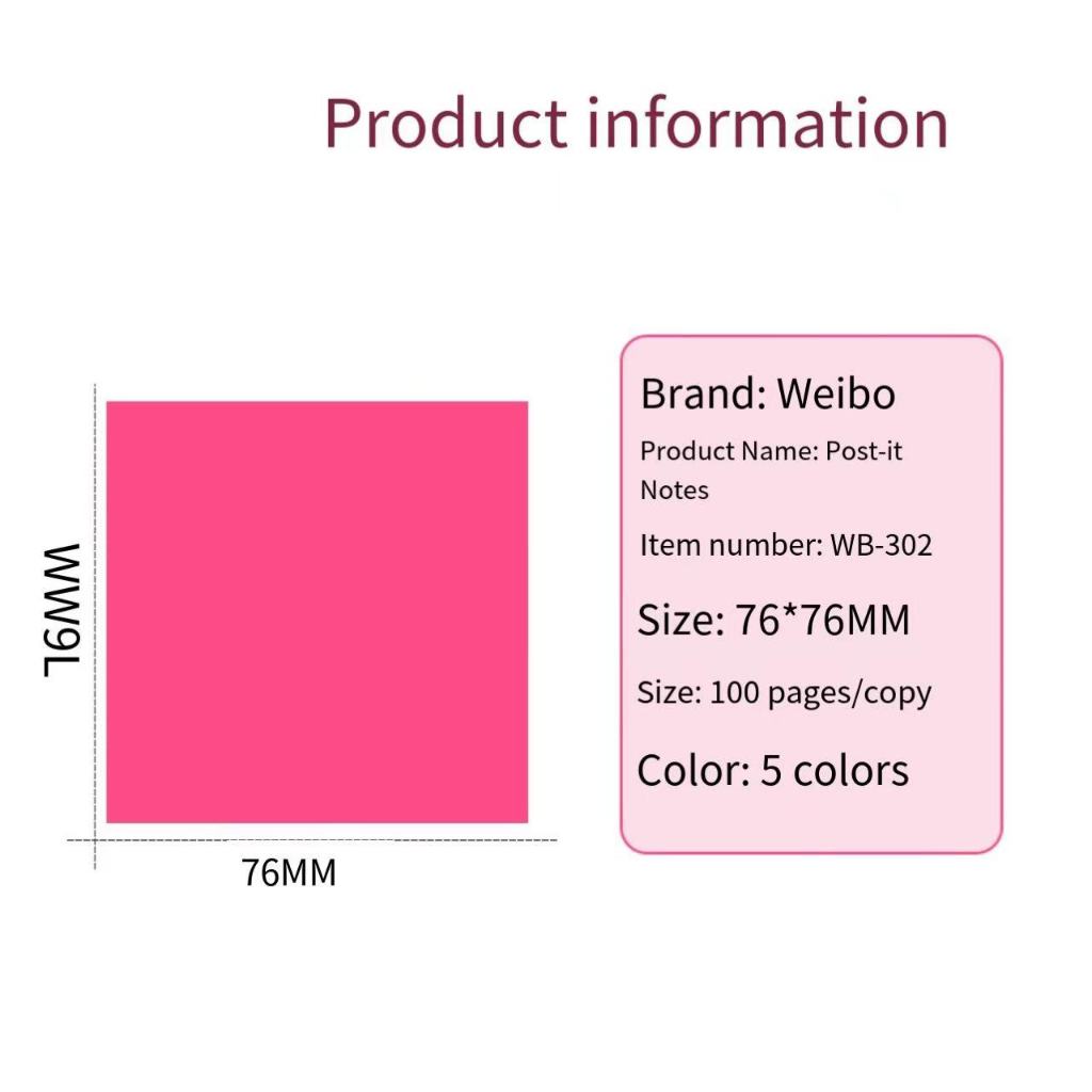 WEIBO WB-302 FLUORESCENT COLOR STICKY NOTES 76mmX76mm 100sheets/SCHOOL SUPPLIES