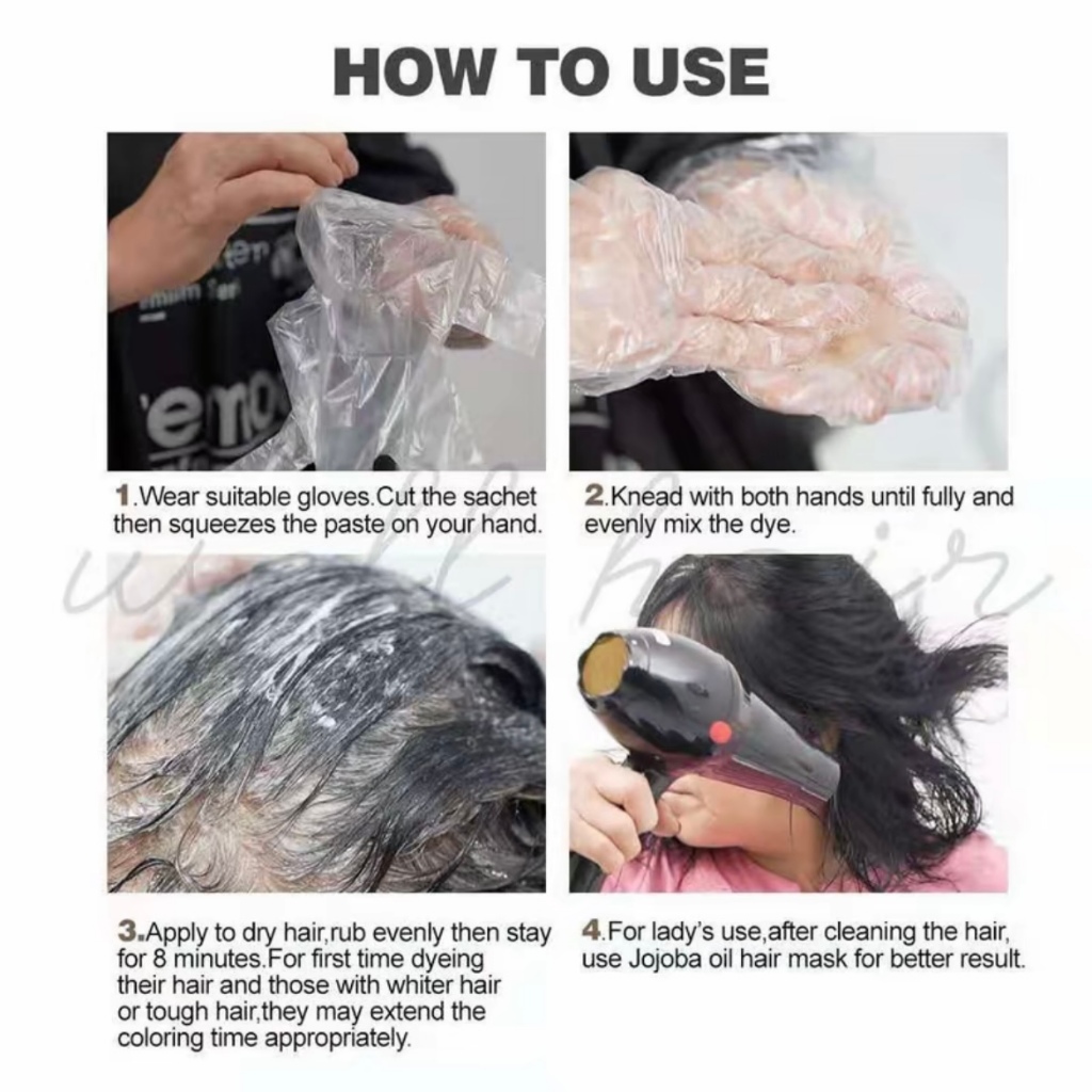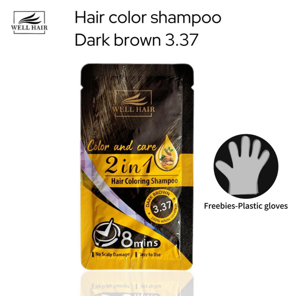 WELL HAIR Color Shampoo No Scalp Damge 100% White Coverage 30ml (Free Gloves)