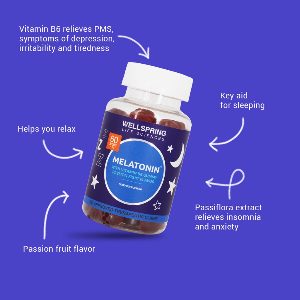 WELLSPRING Melatonin Sleep Aid Gummies for Sleep Passionfruit Flavor 60 Gummies