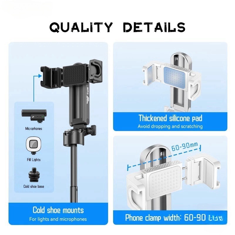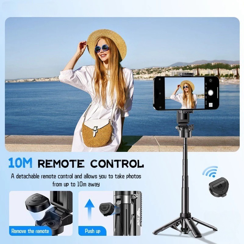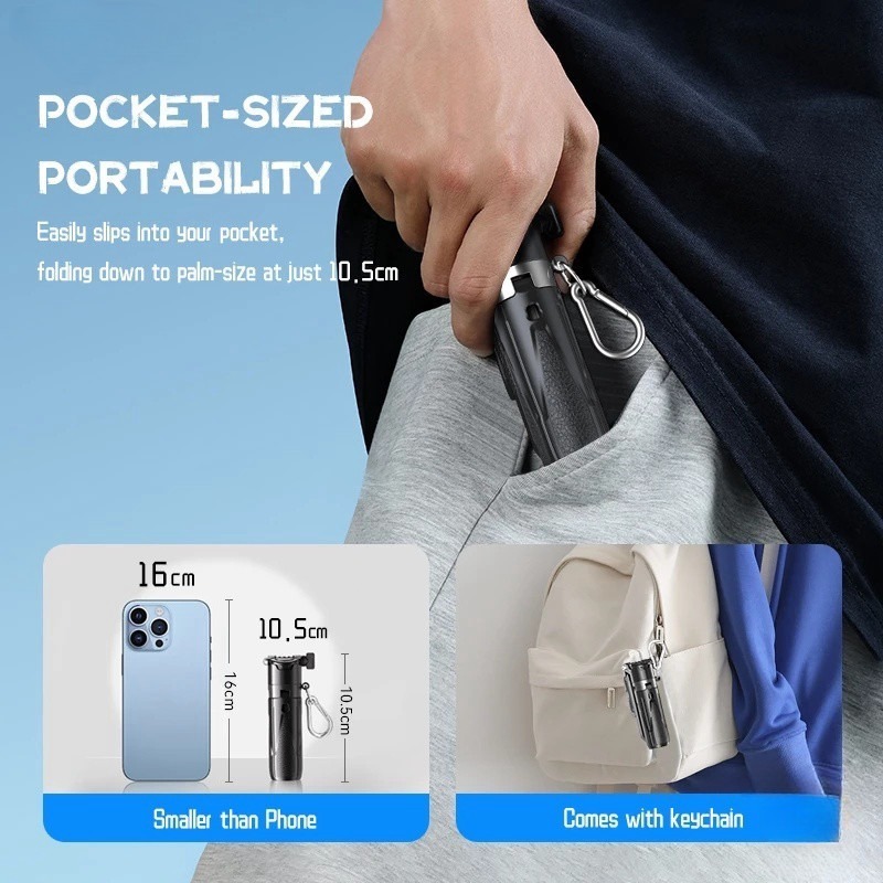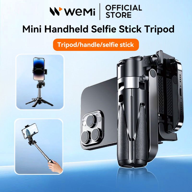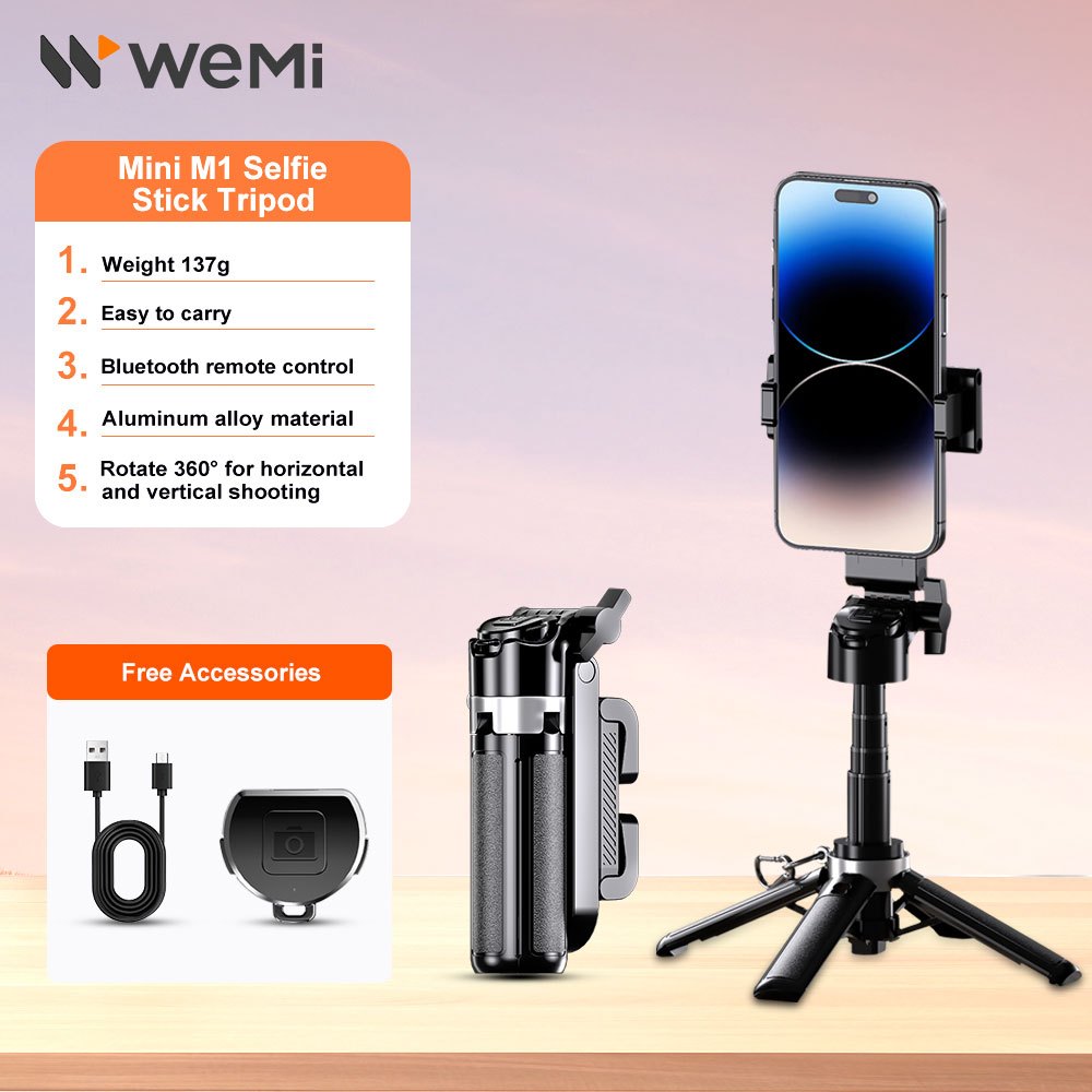 WEMI M1 Mini Extendable Selfie Stick Bluetooth Remote, Tripod Stand Phone Holder for Vlogging