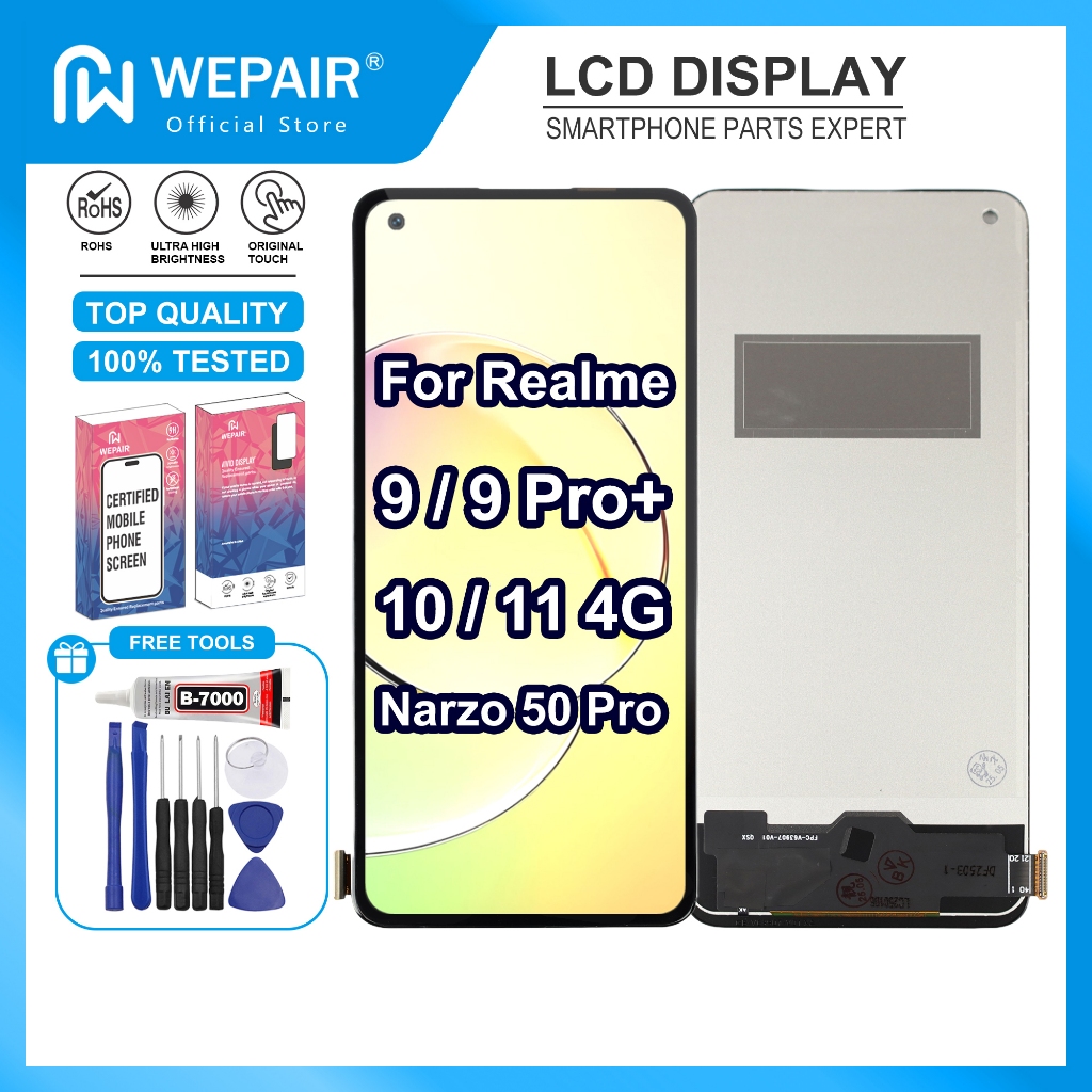 WEPAIR Original LCD Display For Realme 9/10/11 4G/Narzo 50 Pro Touch Screen Assembly Replacement