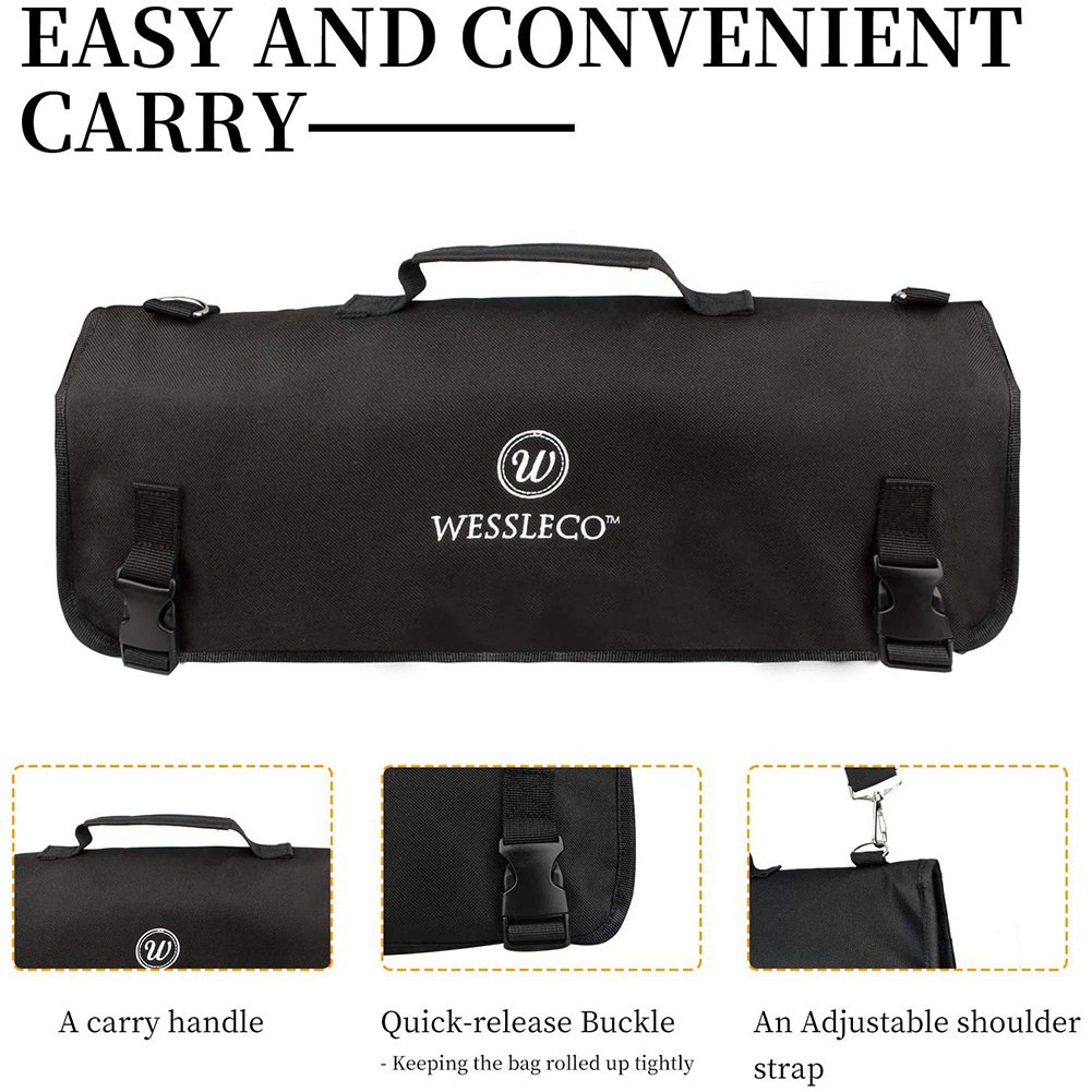 WESSLECO Chef Knife Roll Bag Nylon Carry Case Portable Knives Case with 8 Pockets for Kitchen Access