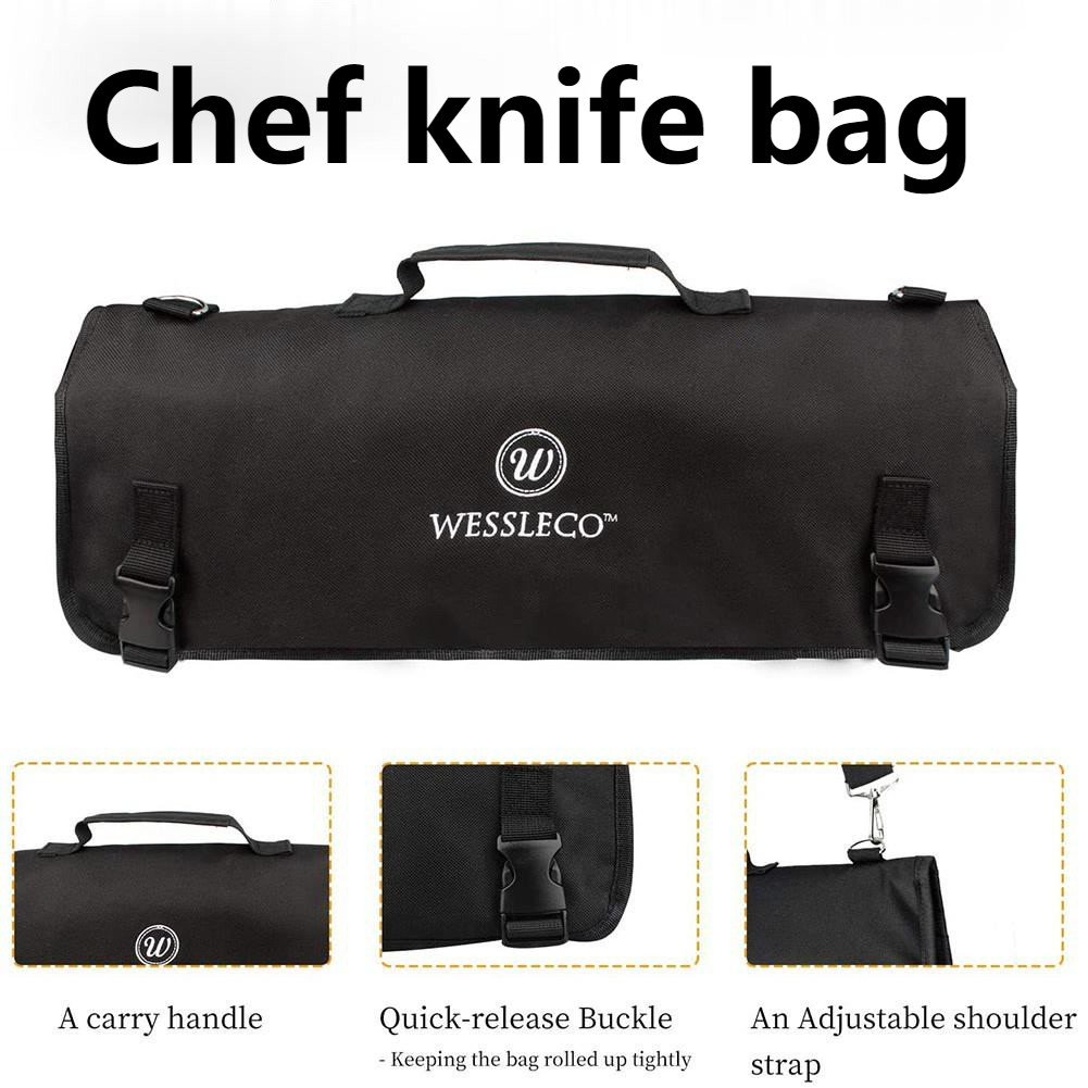 WESSLECO Chef Knife Roll Bag Nylon Carry Case Portable Knives Case with chef knife bag chef bag