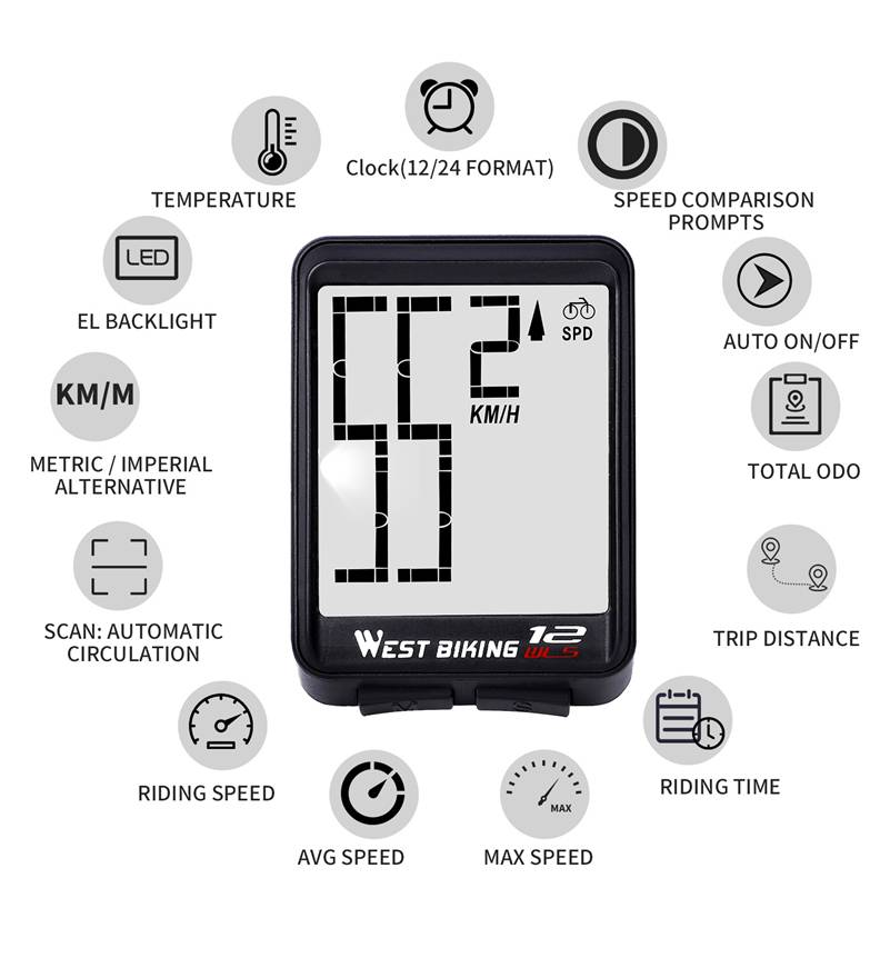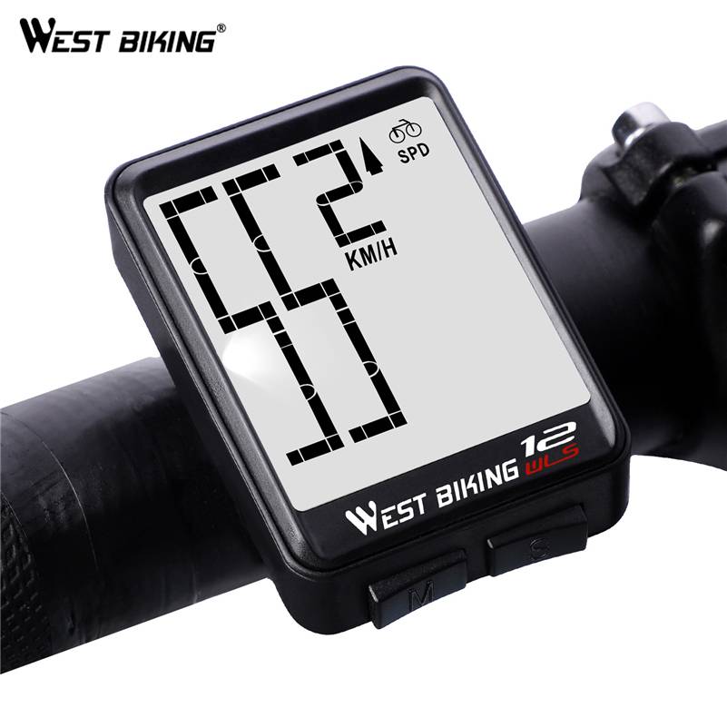 WEST BIKING Large Screen Bicycle Computer Wireless Waterproof Bike Speedometer Stopwatch With Backlight Bike Speedometer