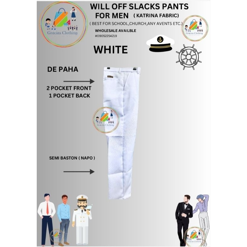 WHITE WELL OFF SLACKS FOR MEN GOOD QUALITY CLOTHMAN /PALMBEACH / GOOD QUALITY SUPER AFFORDABLE PRICE