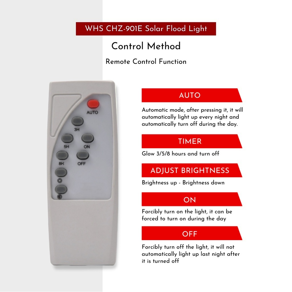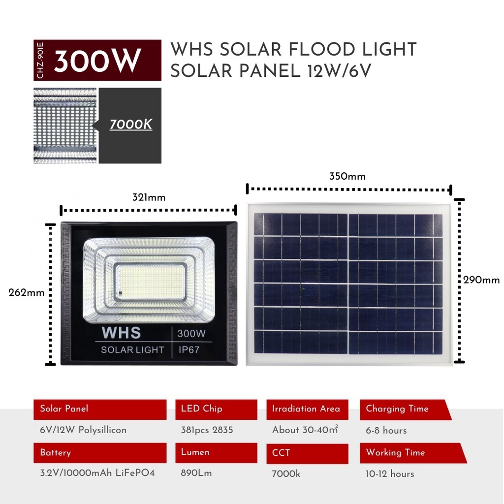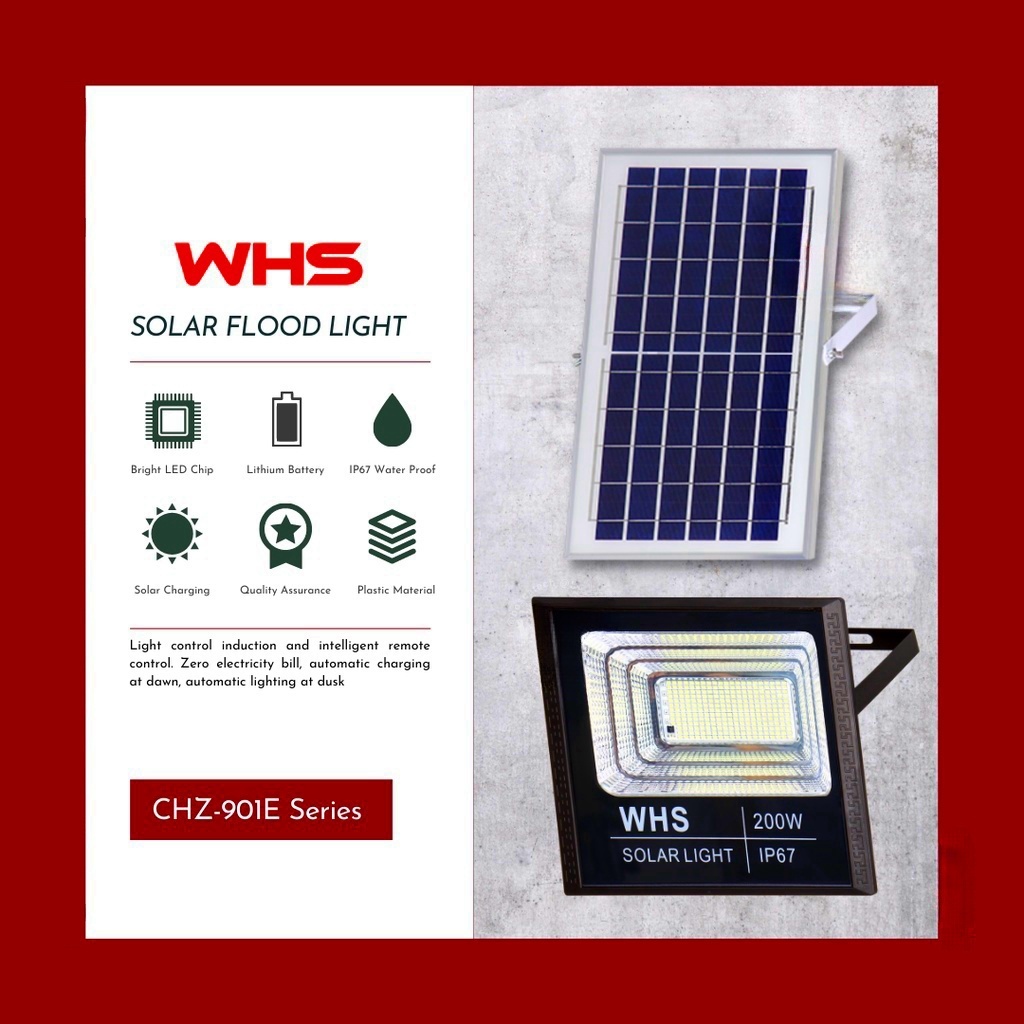 WHS 1 Year Warranty 300W Solar Led Outdoor Flood Light Street Lamp Waterproof With Remote CHZ-901