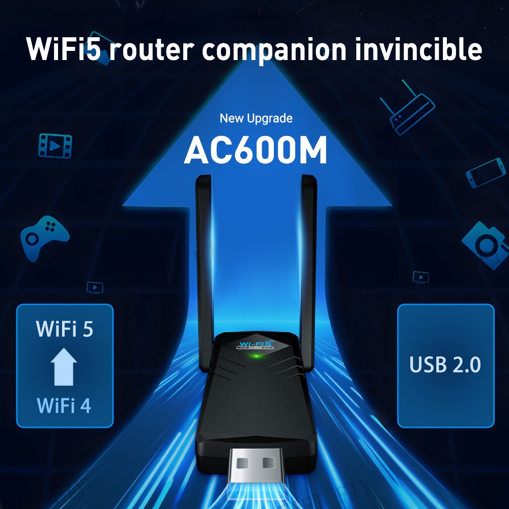 WIFI FIY USB WiFi Adapter 600mbps Bluetooth5.0 Realtek Driver Free Dual-band 2.4G/5G Wireless Network Card 802.11AC WiFi Dongle for Laptop Desktop PC