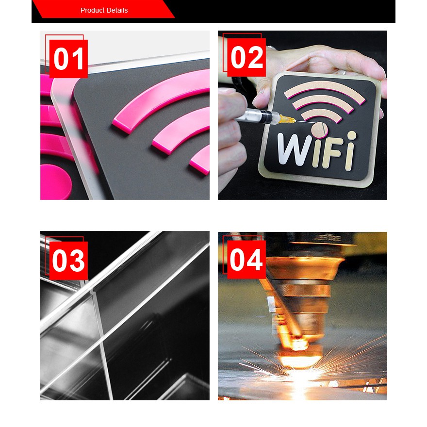 WIFI Prompt Acrylic Sign Wireless Network Sign Wall Sticker 10x10x0.75cm (back with gum)