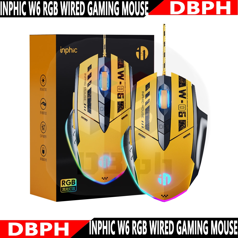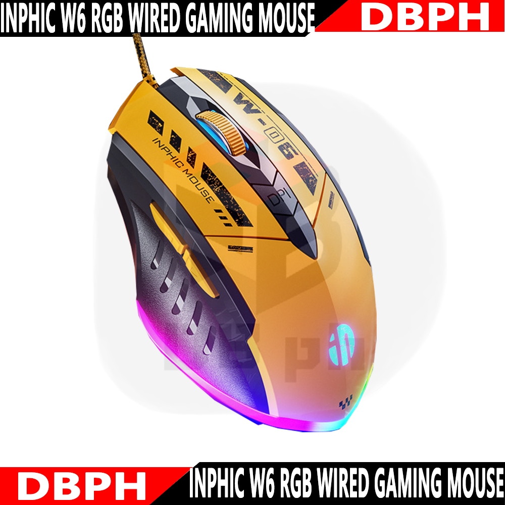 WILLTECHNPHIC W6 RGB Wired Gaming Mouse Mecha Style 12800DPI Optical Gamer Mouse 6 Programmable Butt