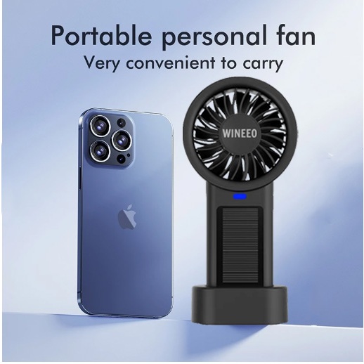 WINEEO Rechargeable Mini Fan Handheld Fan Solar chargeable Portable Hand Base Stand Type-C Mini Fan