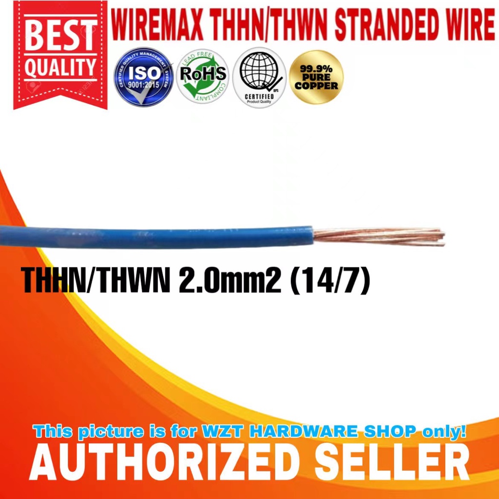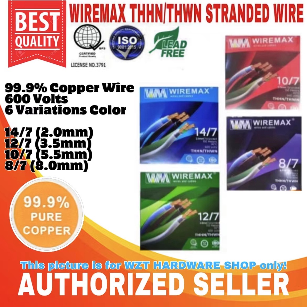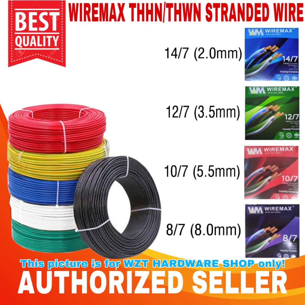 WIREMAX 99.9% PURE COPPER THHN/THWN STRANDED WIRE 14/7 2.0mm - 12/7 3.5mm (5m/10m)