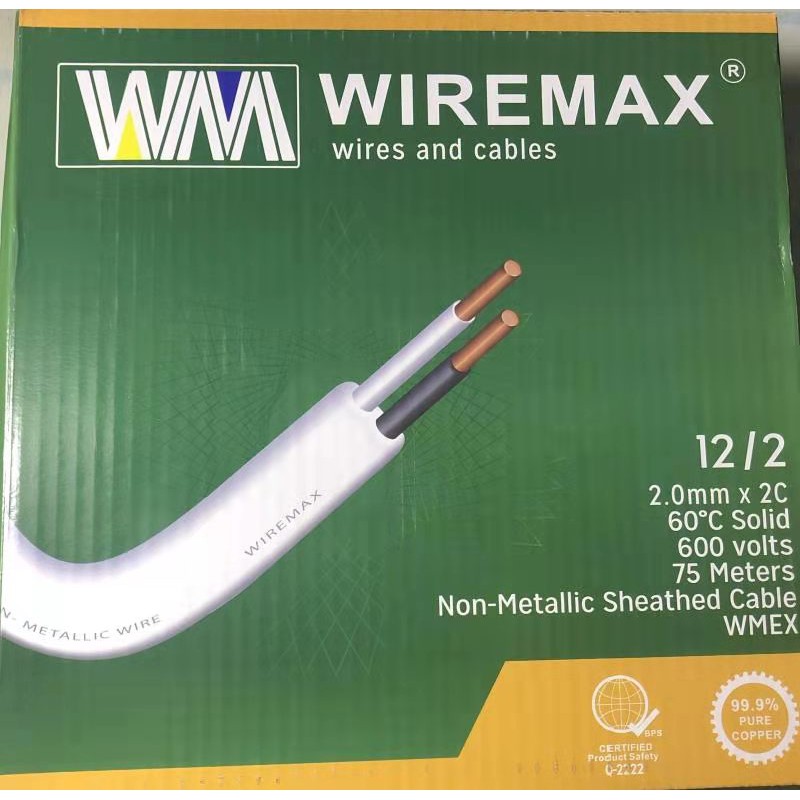 WIREMAX PDX Non Metallic Wire 14/2 (1.6mm/2C) 12/2 (2.0mm/2C) 10/2 (2.6mm/2C) per 1 Meter 100% PURE